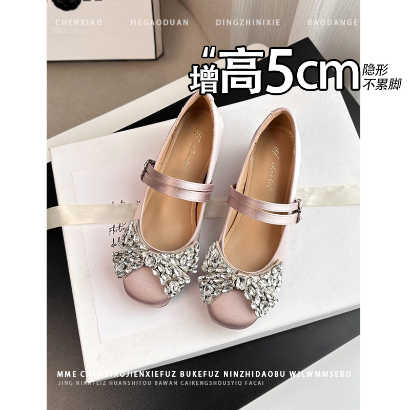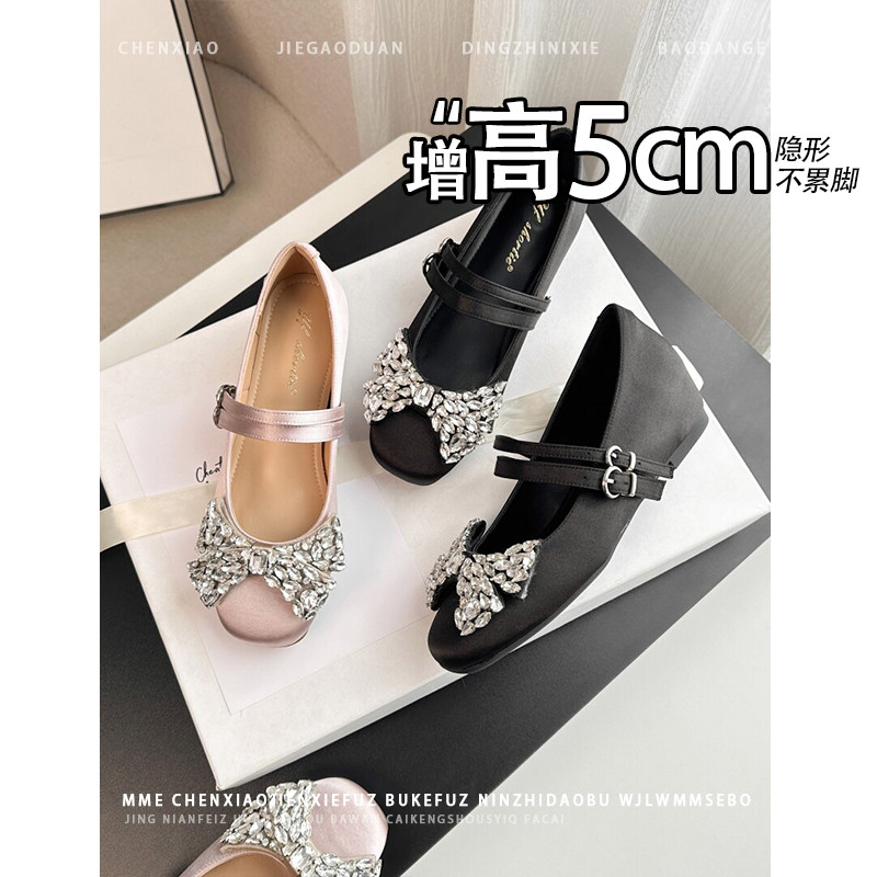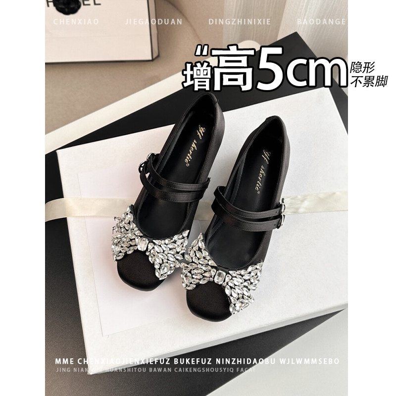 一字扣高跟鞋 2026春新款 女 增高5CM水钻蝴蝶结玛丽珍单鞋 不累脚