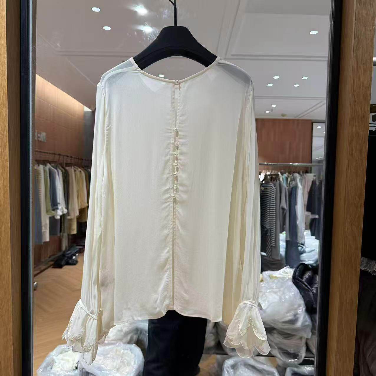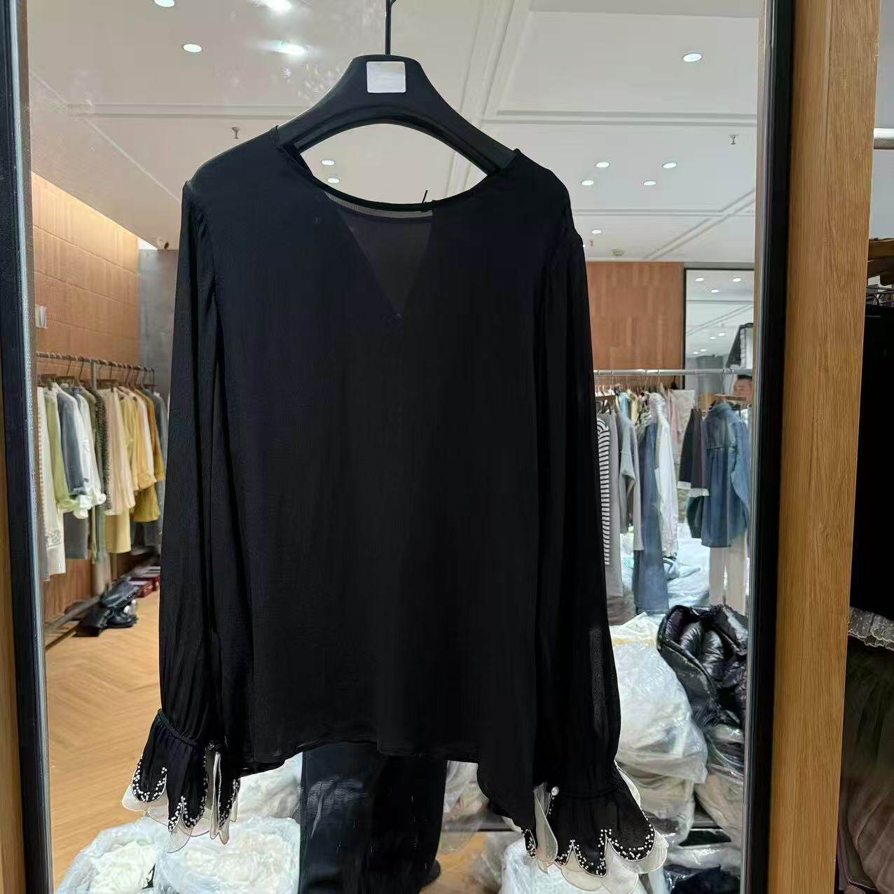 衬衫 气质人丝长袖 女5839 圆领钉珠珠花边喇叭袖 欧洲站2026春新款