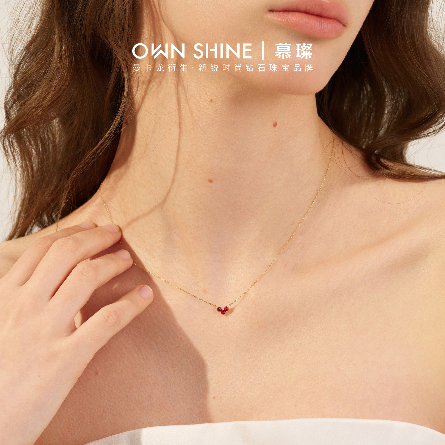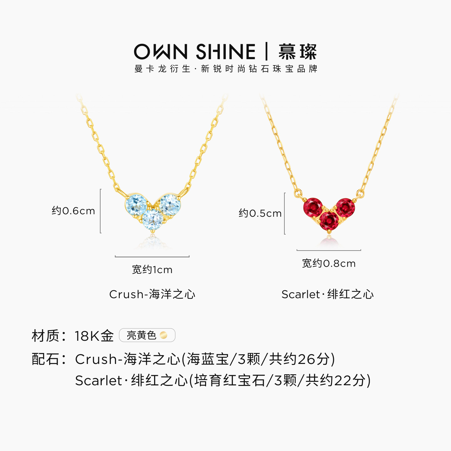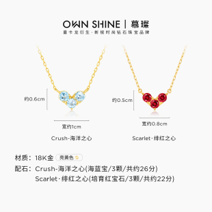 慕璨怦然心动18K金培育红宝石项链海蓝宝女友 曼卡龙 官方正品
