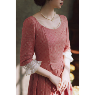 公主复古田园气质设计感中袖 方领法式 连衣裙 贝儿 拾光裁缝