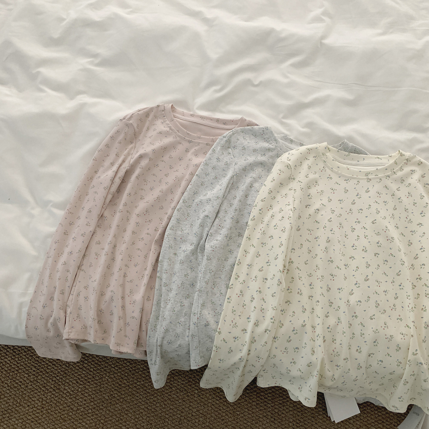 碎花圆领长袖 T恤~春日花花温柔棉质百搭上衣