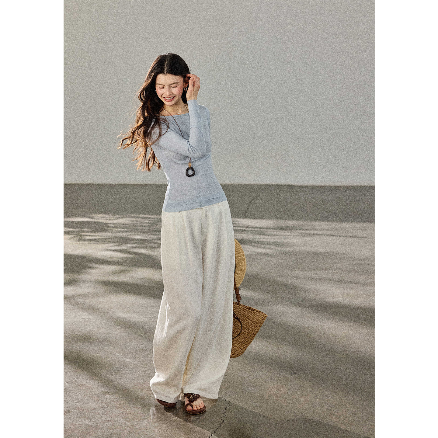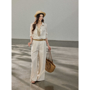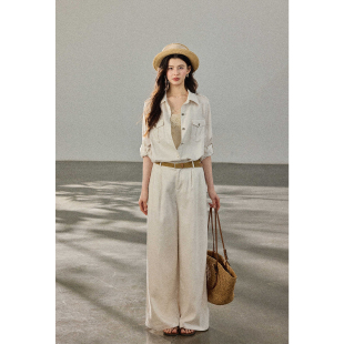 拖地裤 贰羊设计 女高级感长裤 高腰棉麻阔腿休闲裤 百搭春 不知客