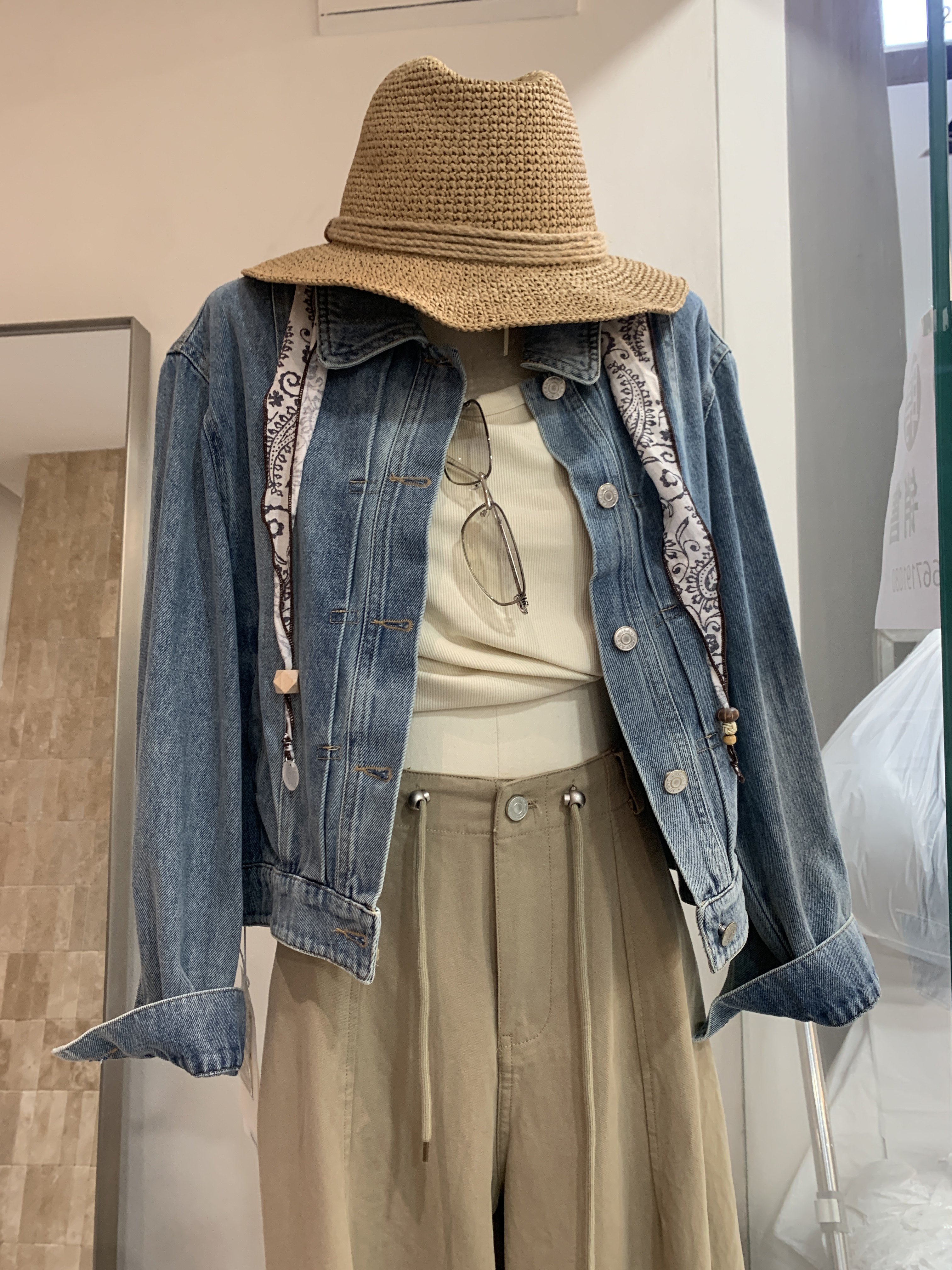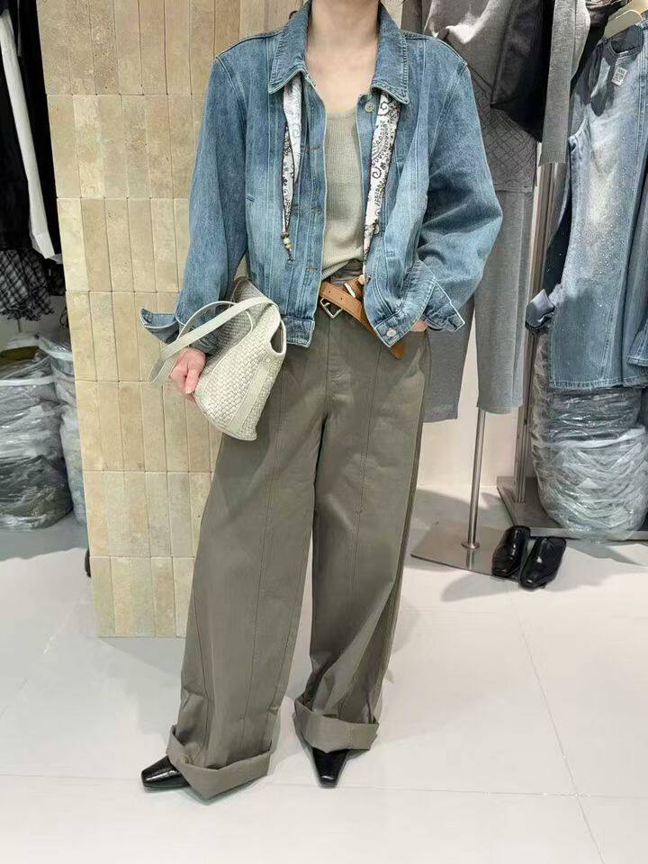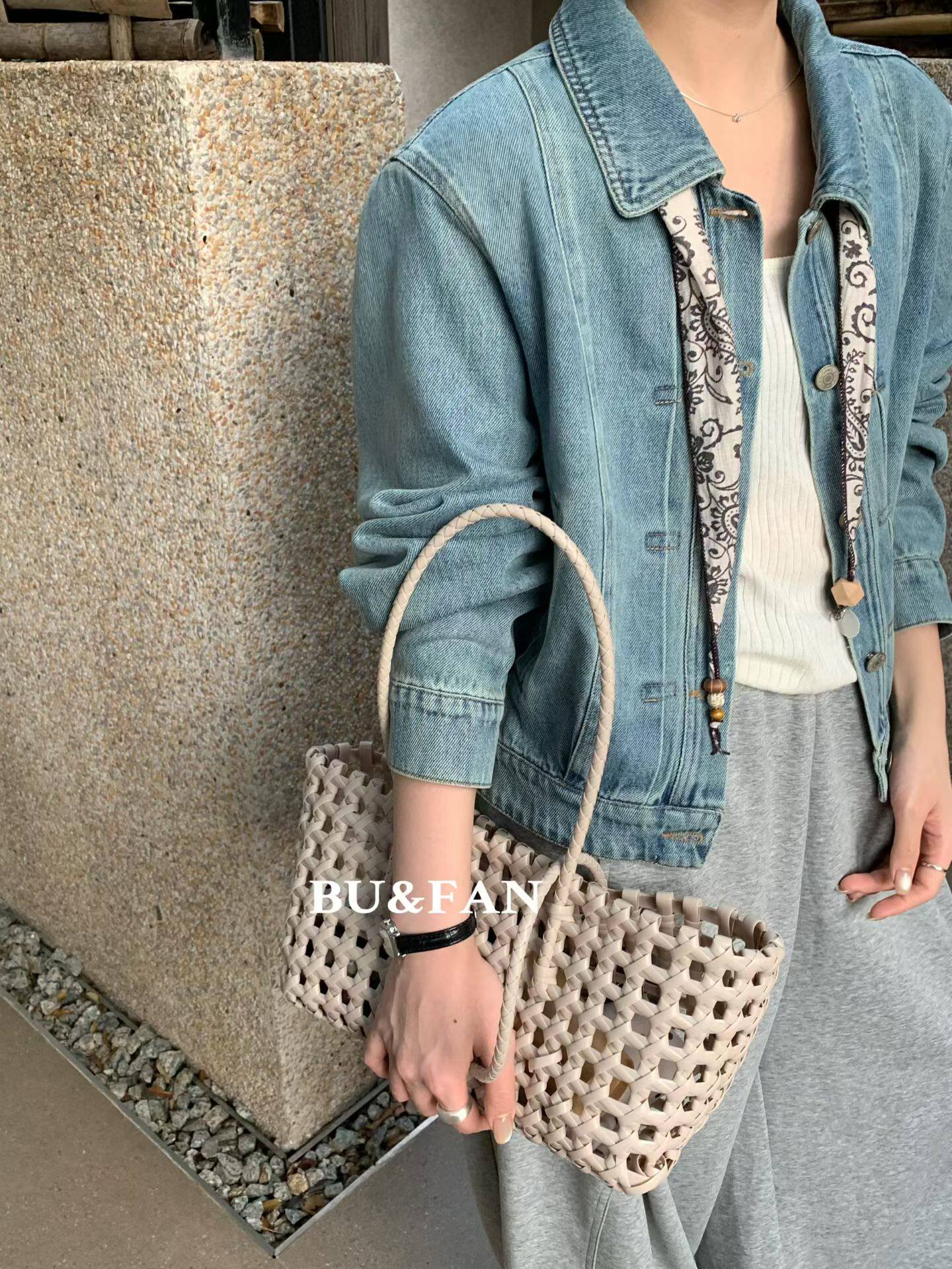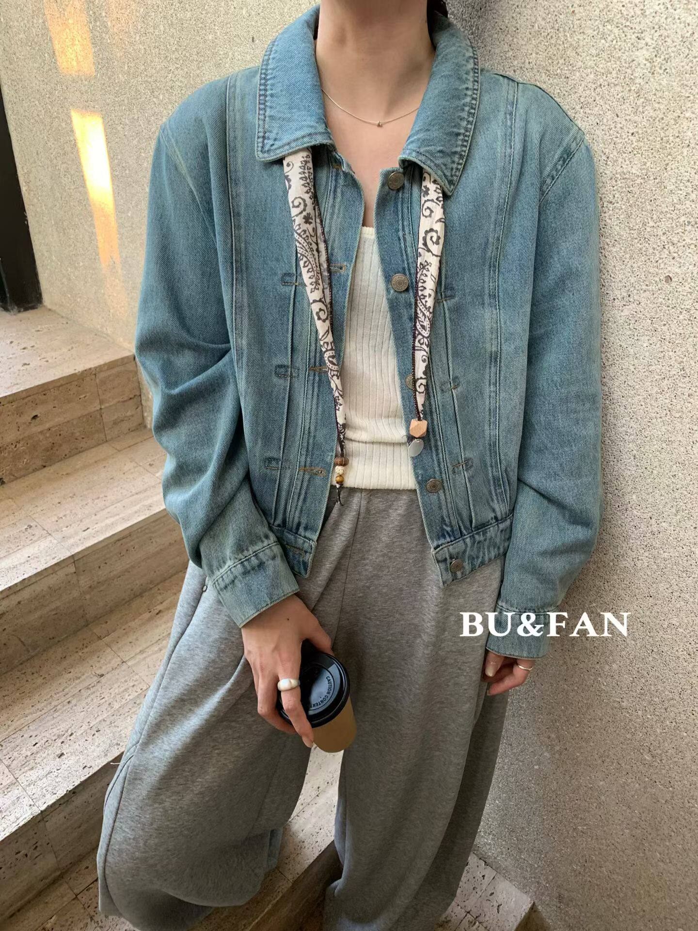 BUFAN布凡33036新款 翻领排扣复古休闲洗水牛仔短外套配丝巾女 韩版
