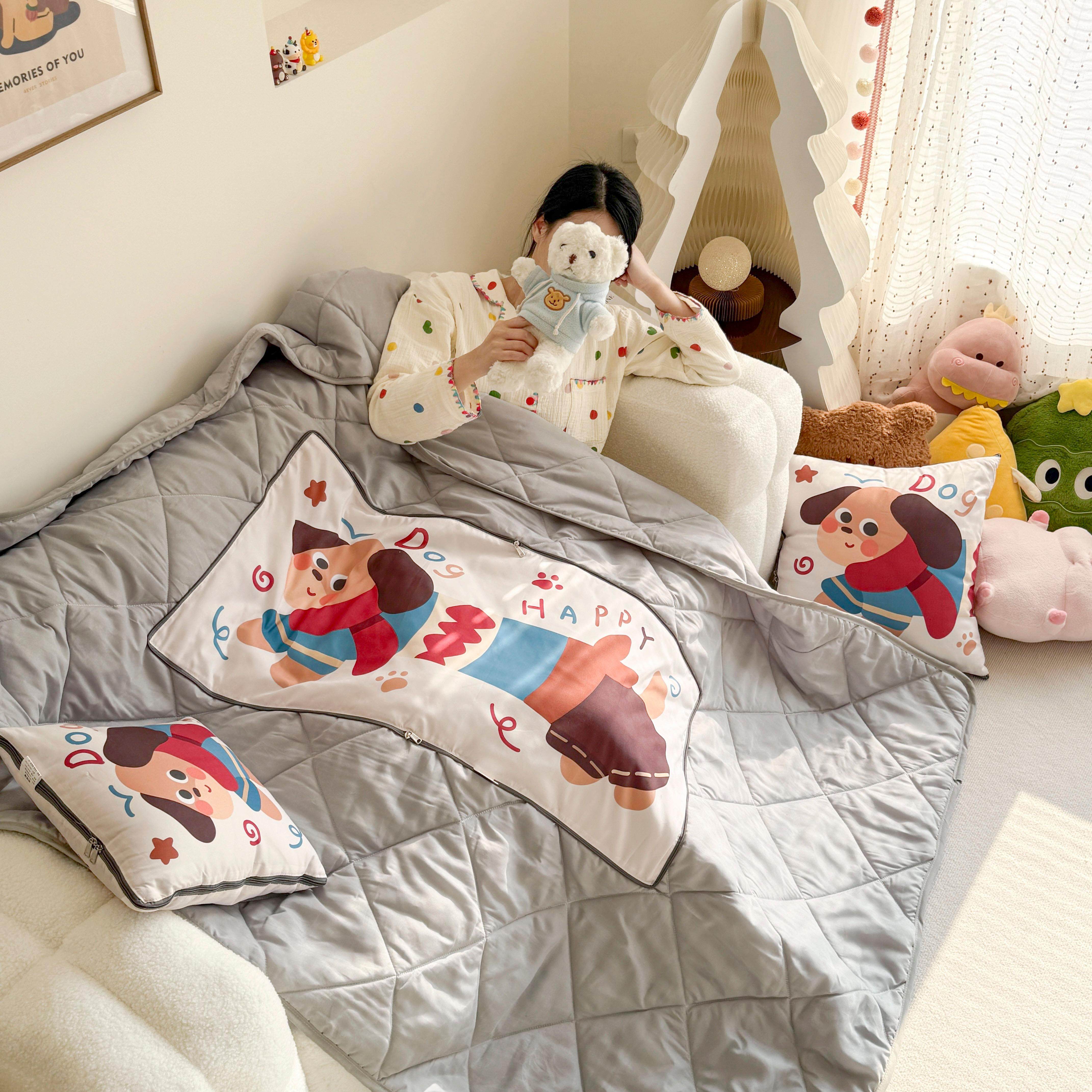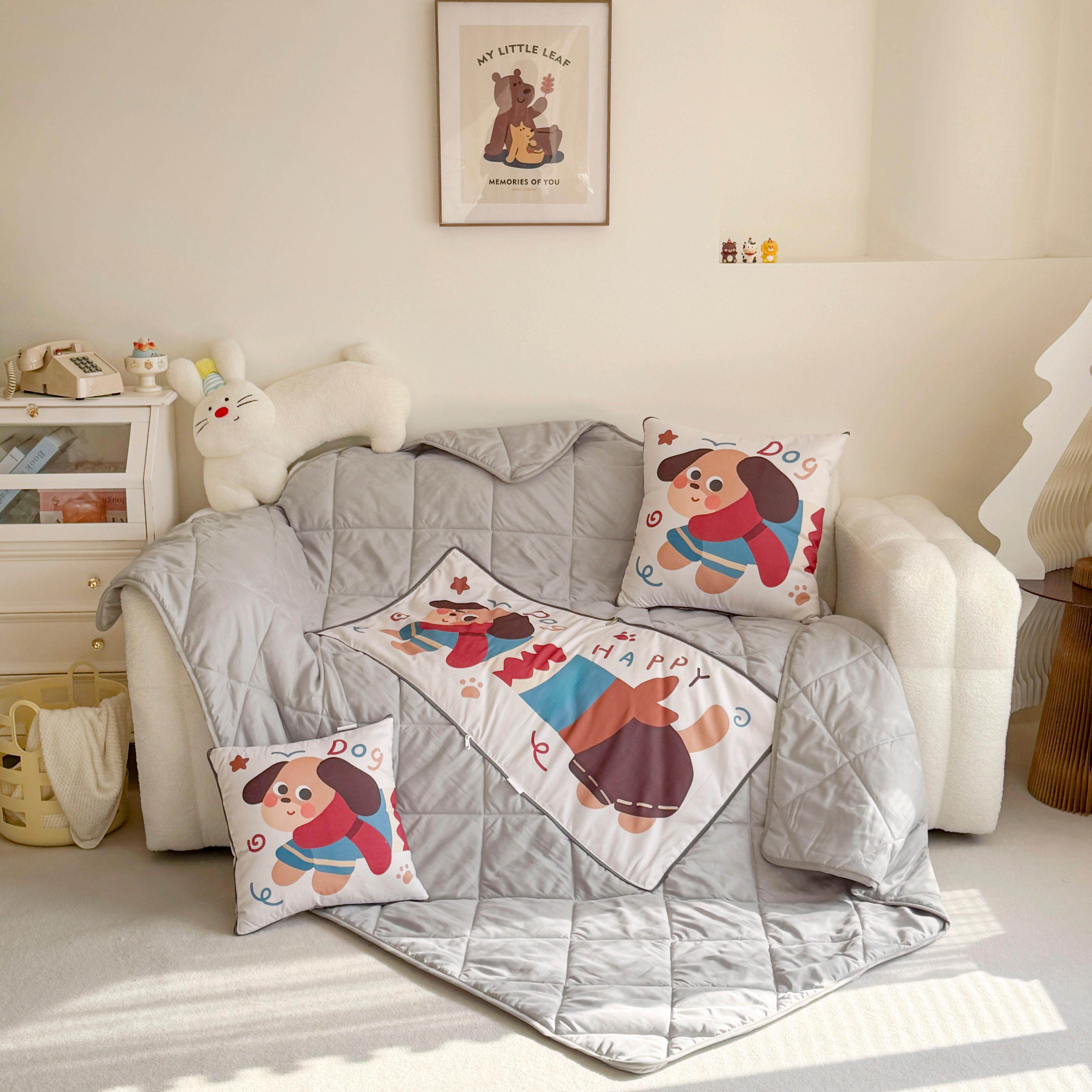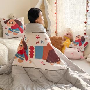 卡通小狗抱枕被两用汽车靠垫轻薄折叠沙发多功能办公室午睡二合一