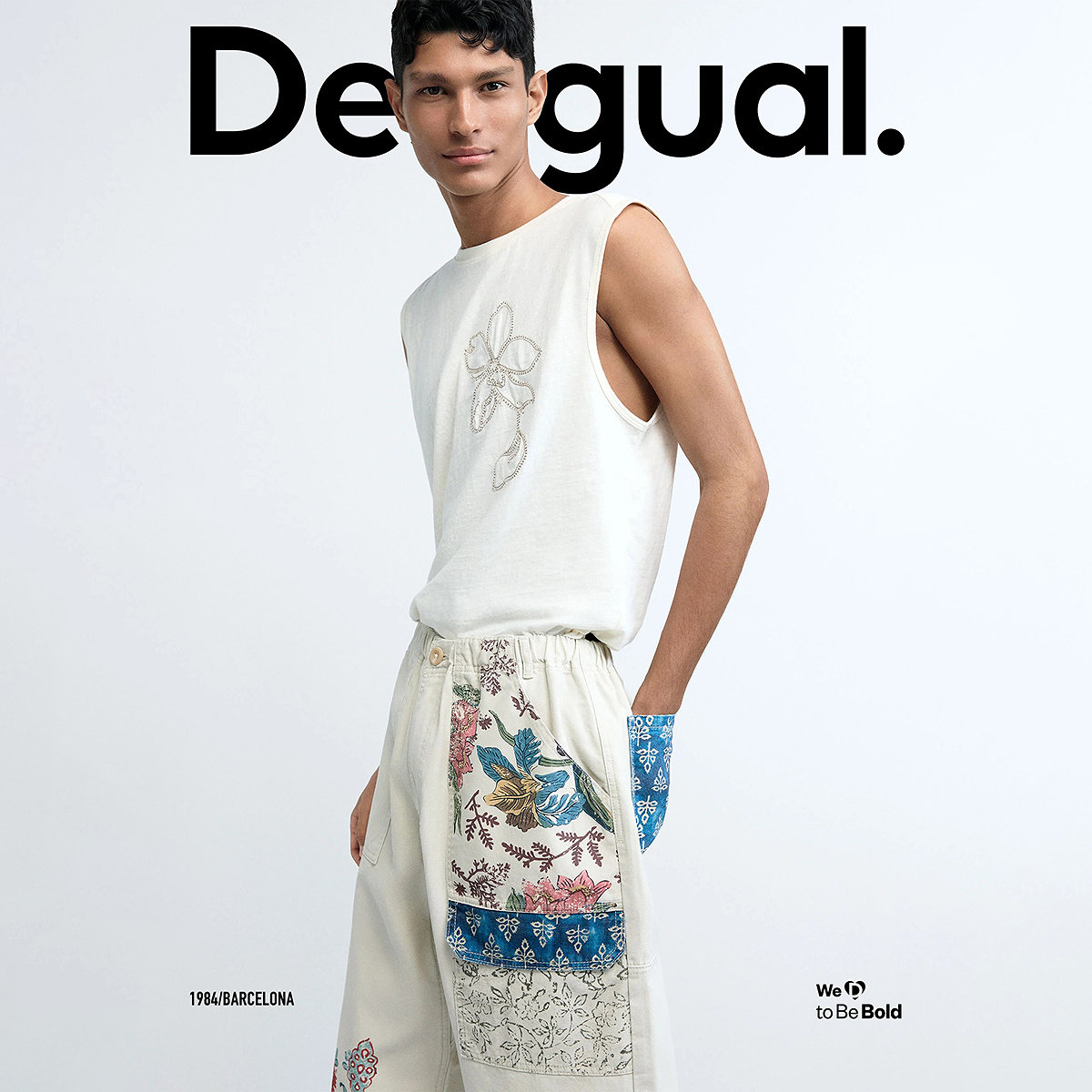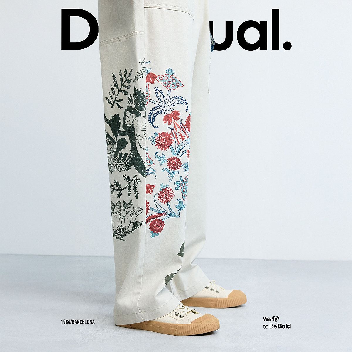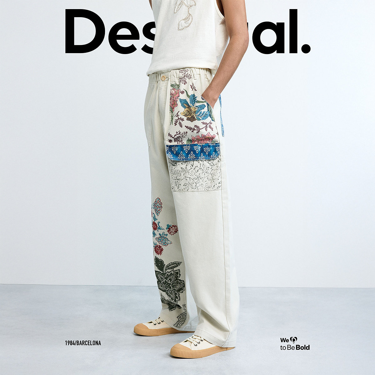 休闲裤 男士 复古手绘植物花纹印花拼接长款 Desigual26春夏新品