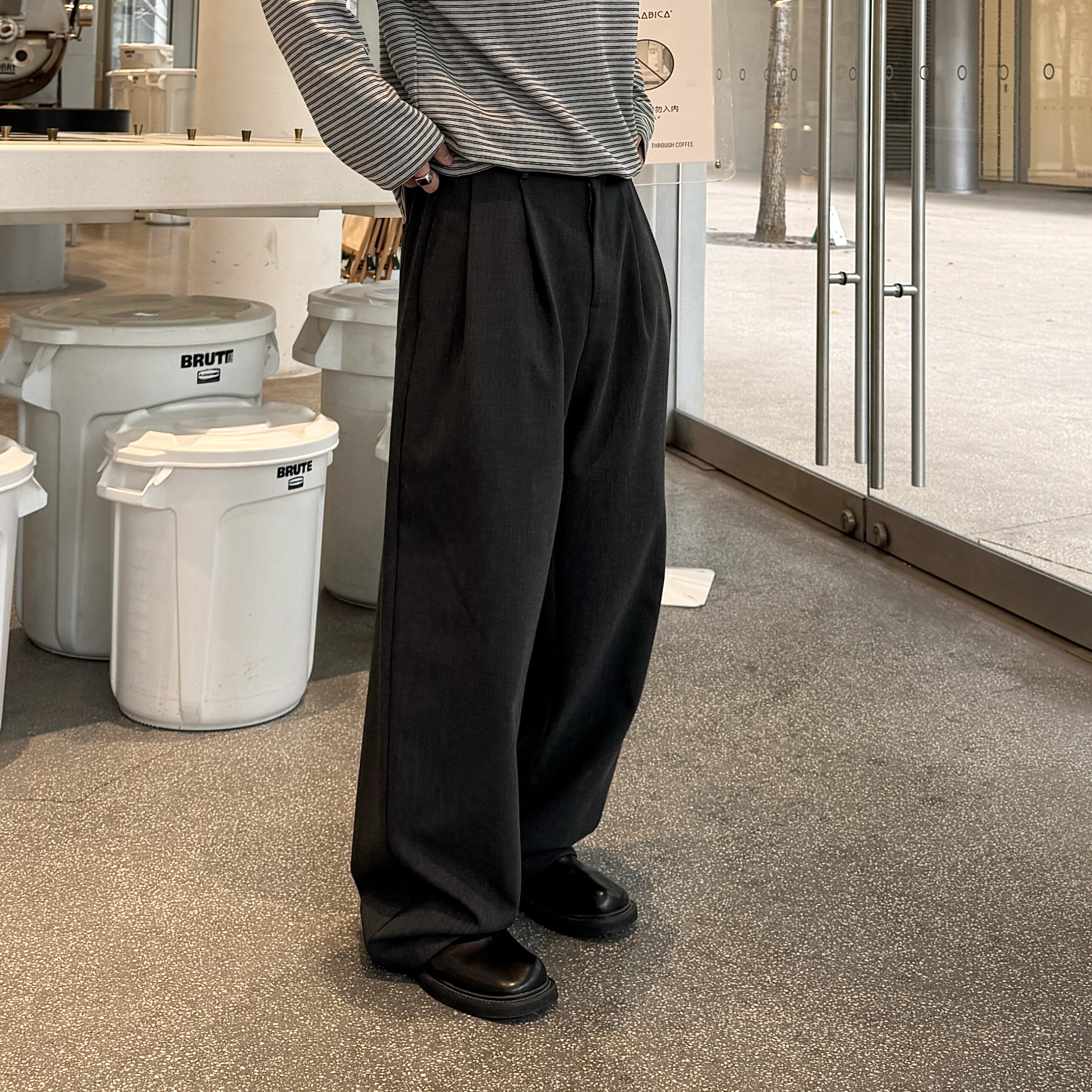 子 慵懒风垂感裤 飞型记直筒阔腿双褶cleanfit休闲西裤 男宽松长裤