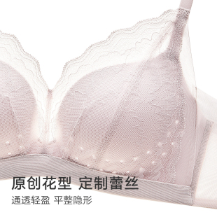 曼妮芬无钢圈性感轻透蕾丝内衣透气春夏薄小胸聚拢文胸20812473
