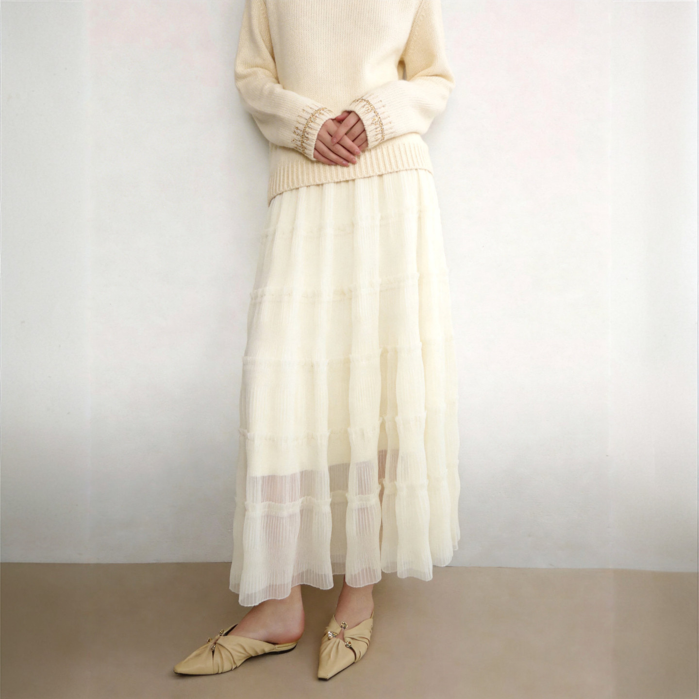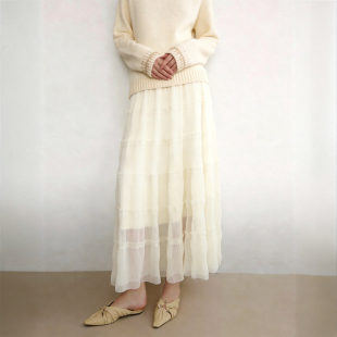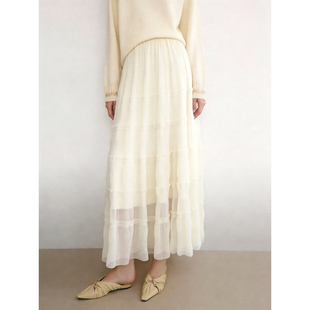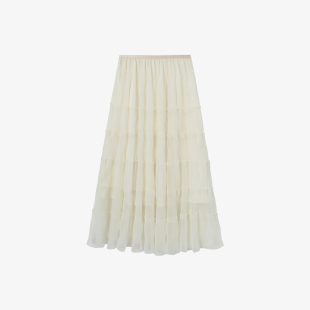 浪漫肌理感纱裙女 百家好纯色网纱拼接蛋糕群2026春季 Basic House