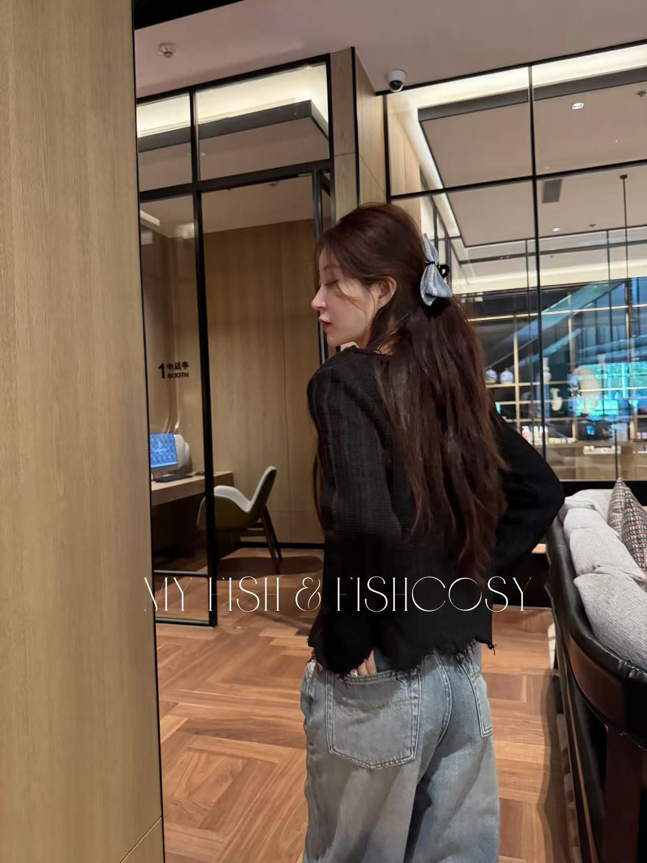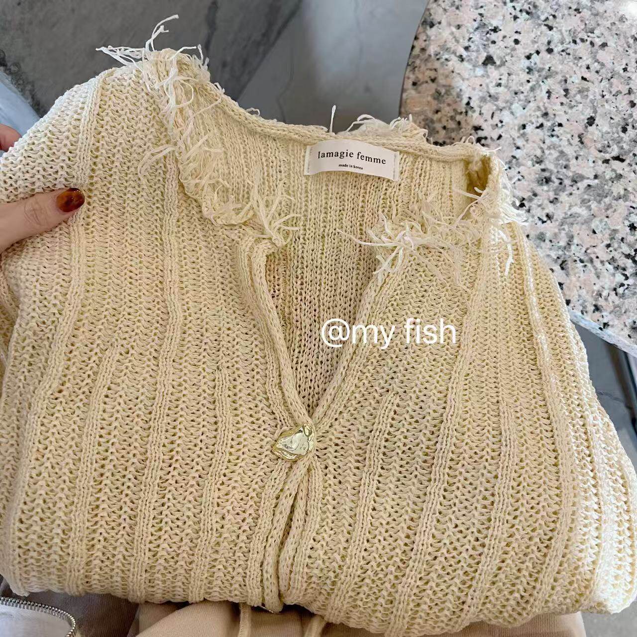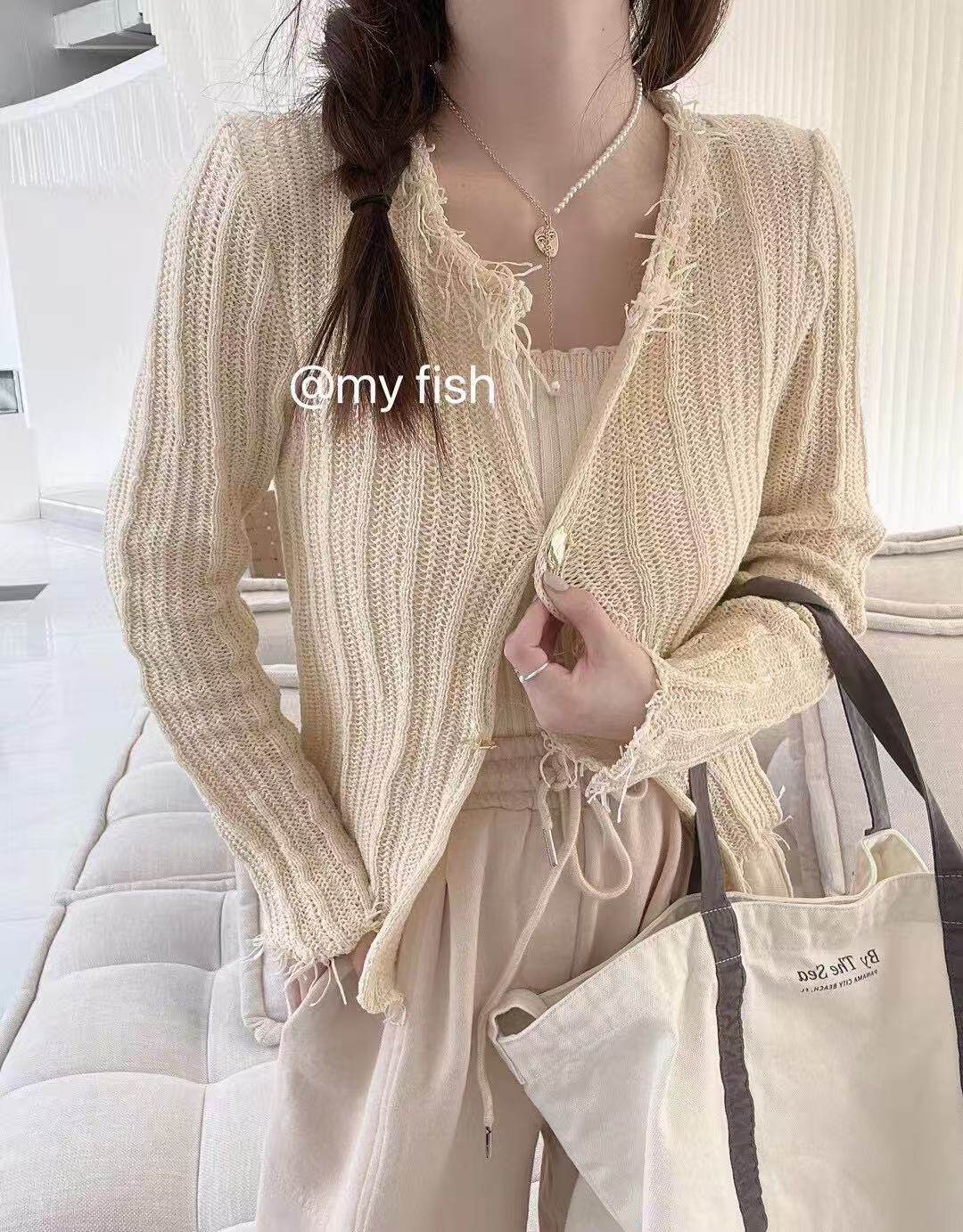 棉麻质感大网眼金属扣开衫 特价 毛边设计 韩国货 不退换