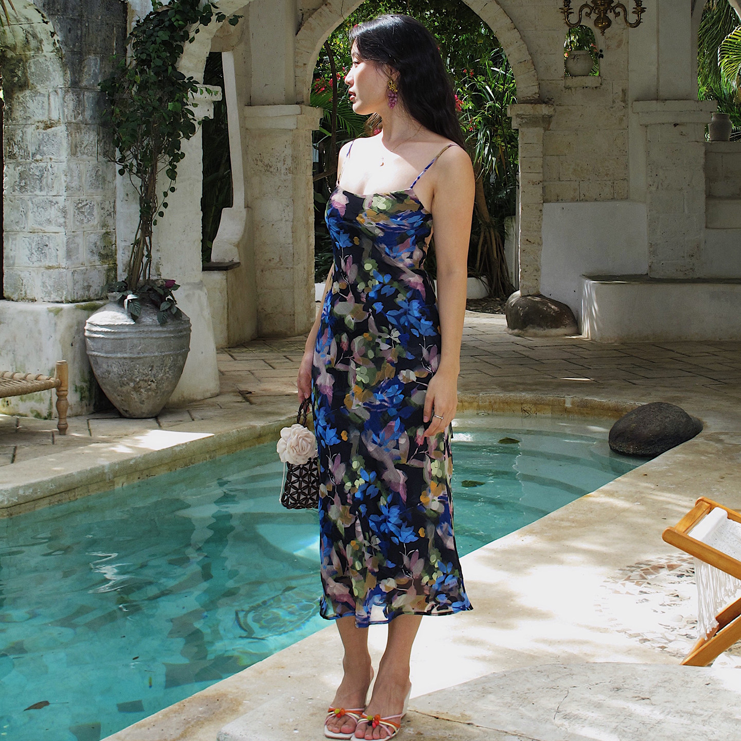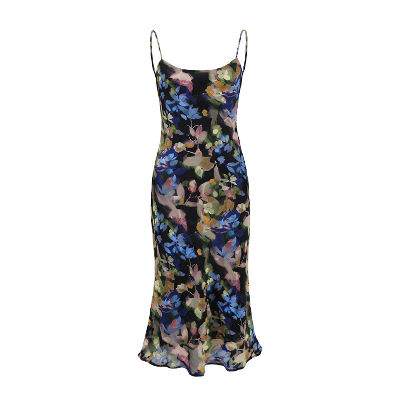 气质修身 ooh 度假风印花吊带连衣裙女中长款 法式 花朵裙 itch痒痒