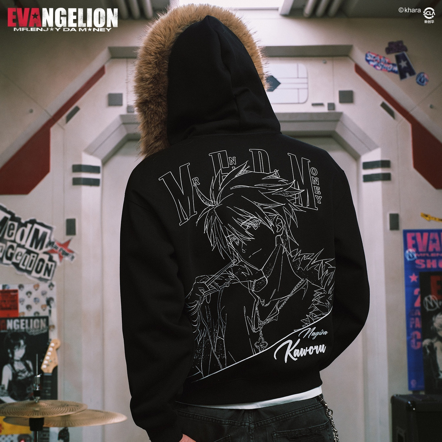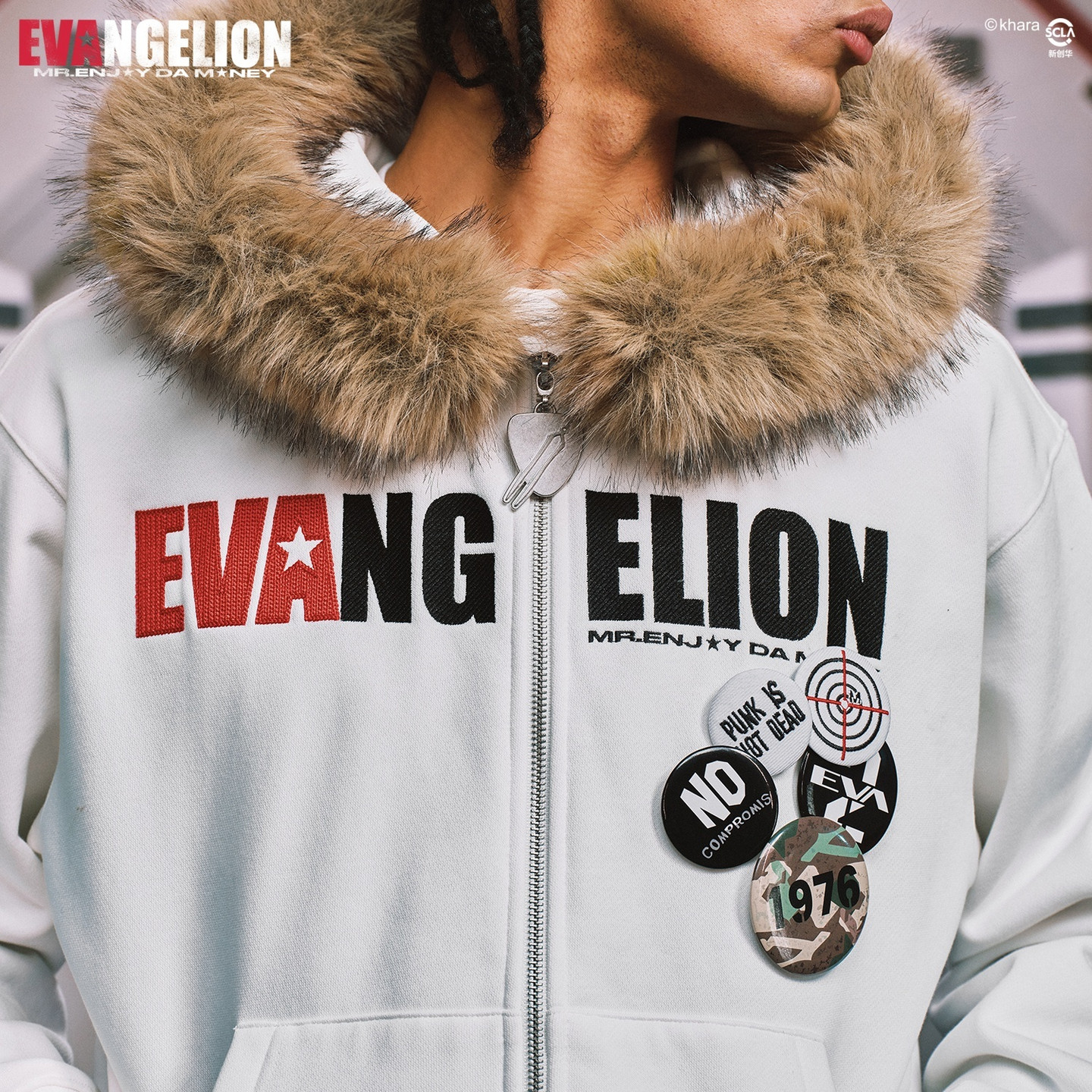 logo刺绣连帽卫衣 END系列人物素描风毛领拉链帽衫 MEDMxEVA NEVER