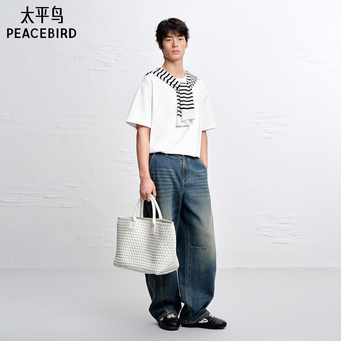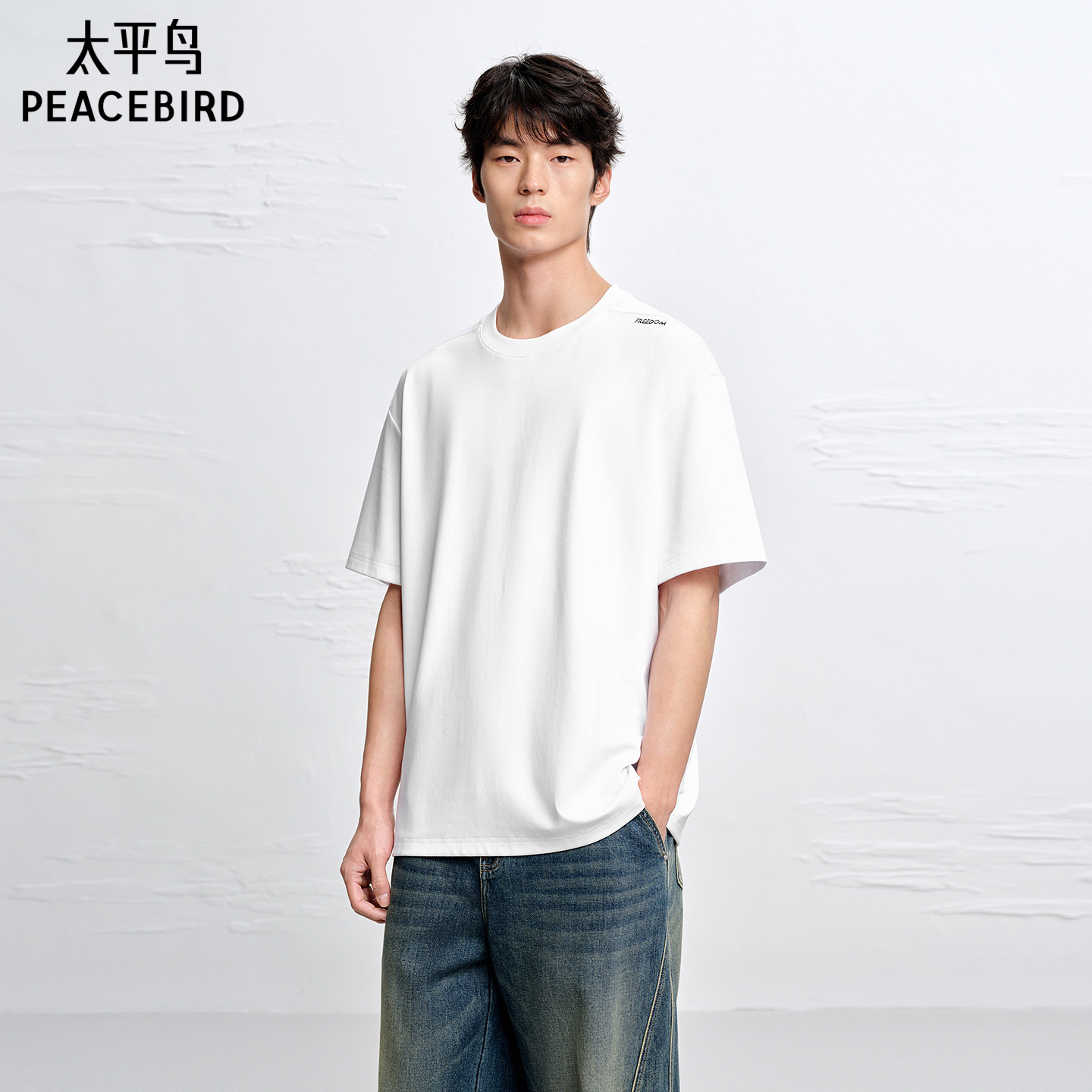 40支超柔双面布白色短袖 太平鸟男装 T恤男B1CNG2160 商场同款