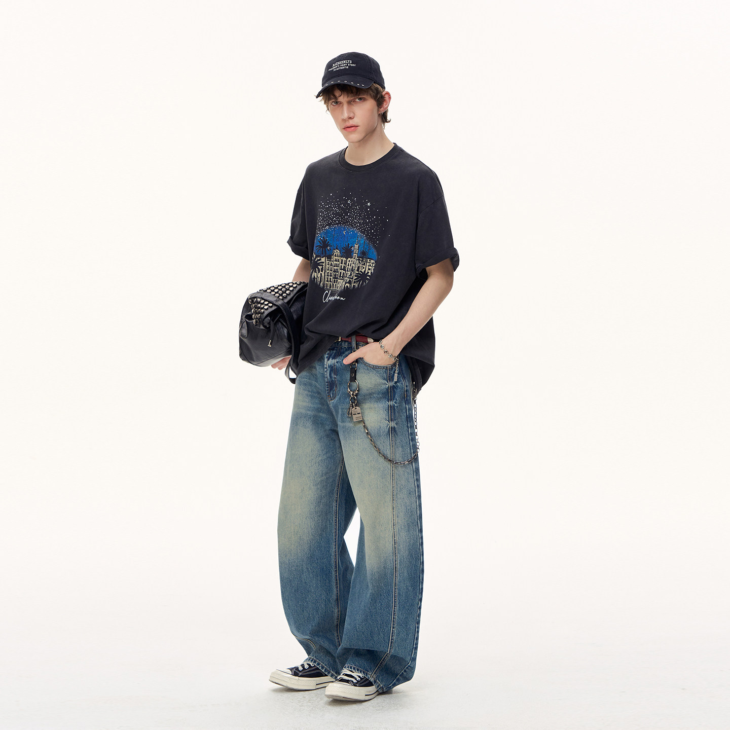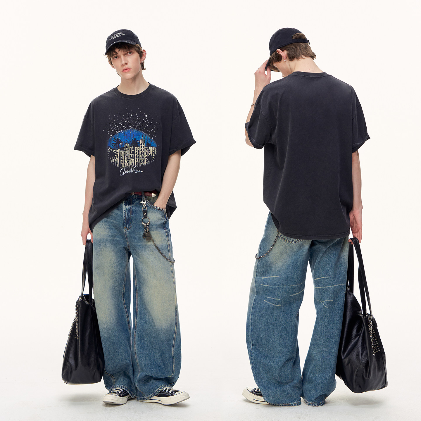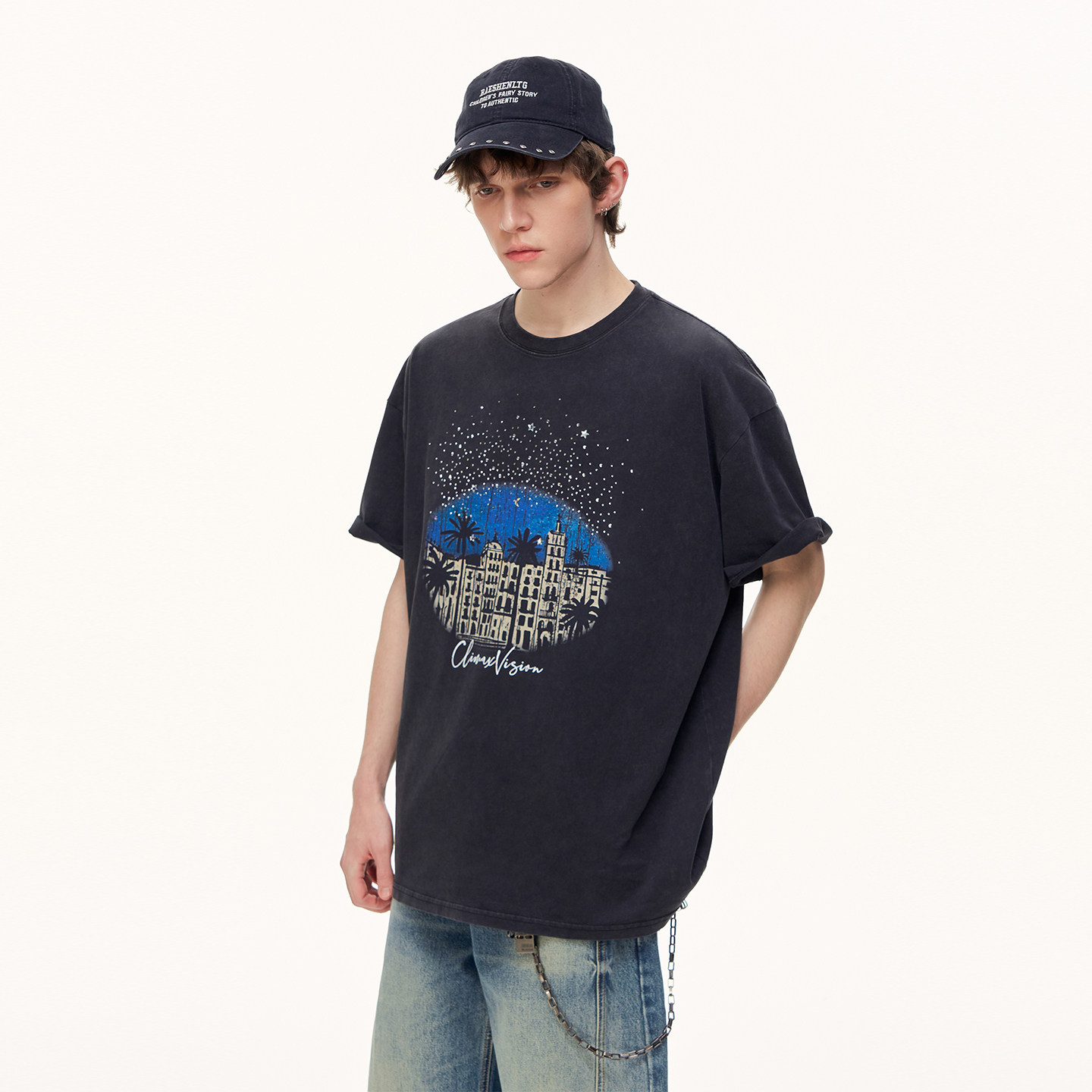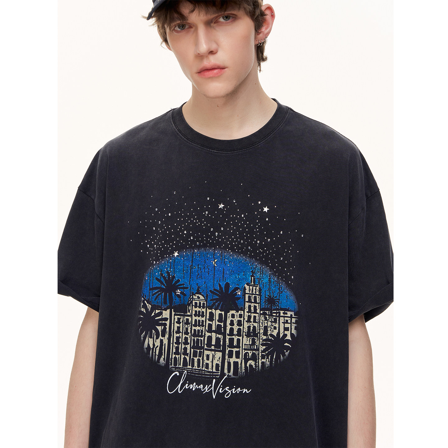 CLIMAX T恤圆领tee VISION满天星闪钻复古城堡纯棉做旧水洗短袖