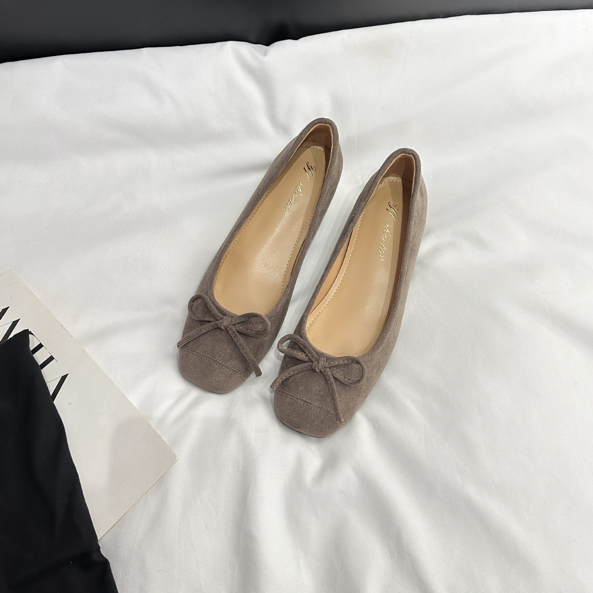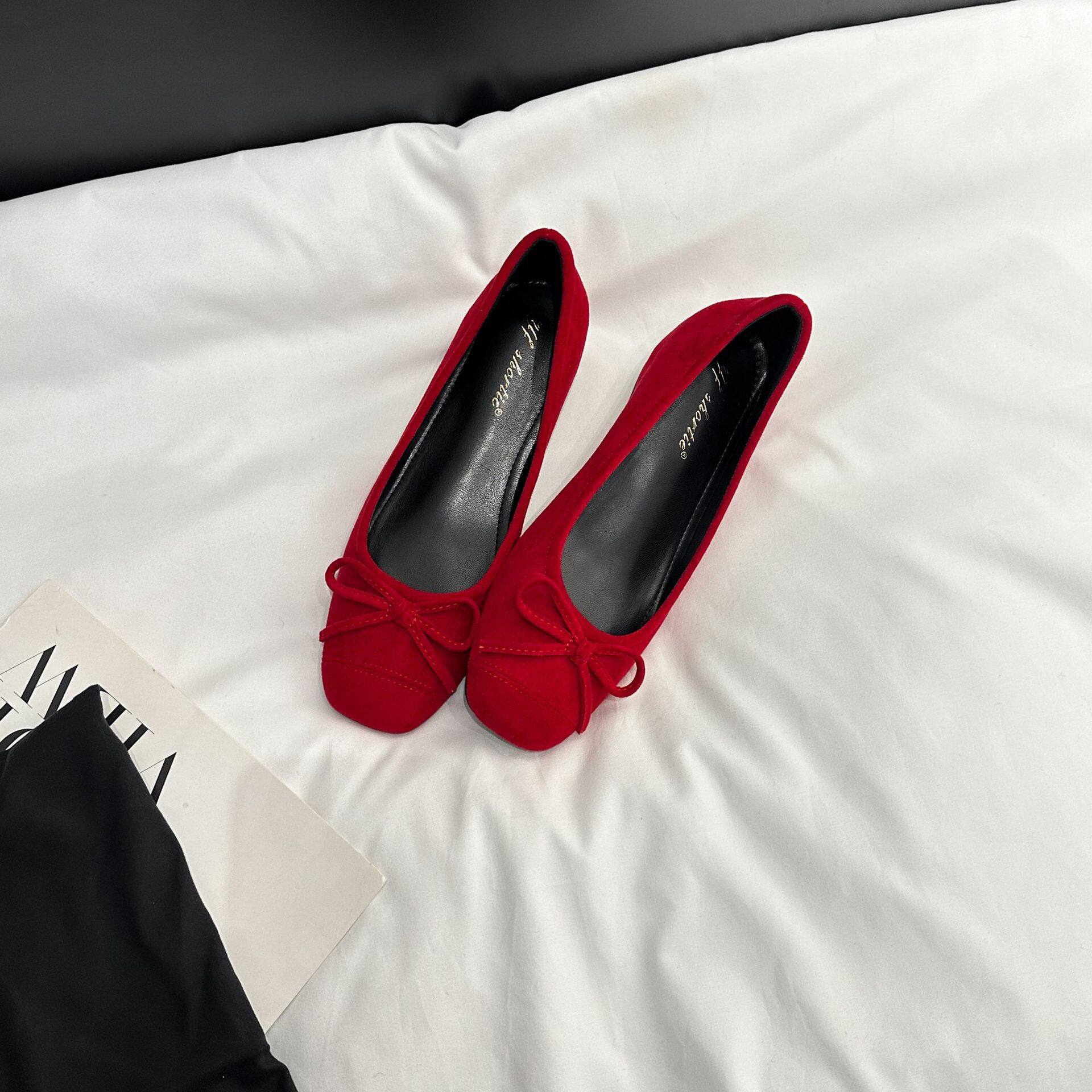 不累脚配裙子一脚蹬玛丽珍鞋 内增高5CM蝴蝶结方头浅口单鞋 女法式