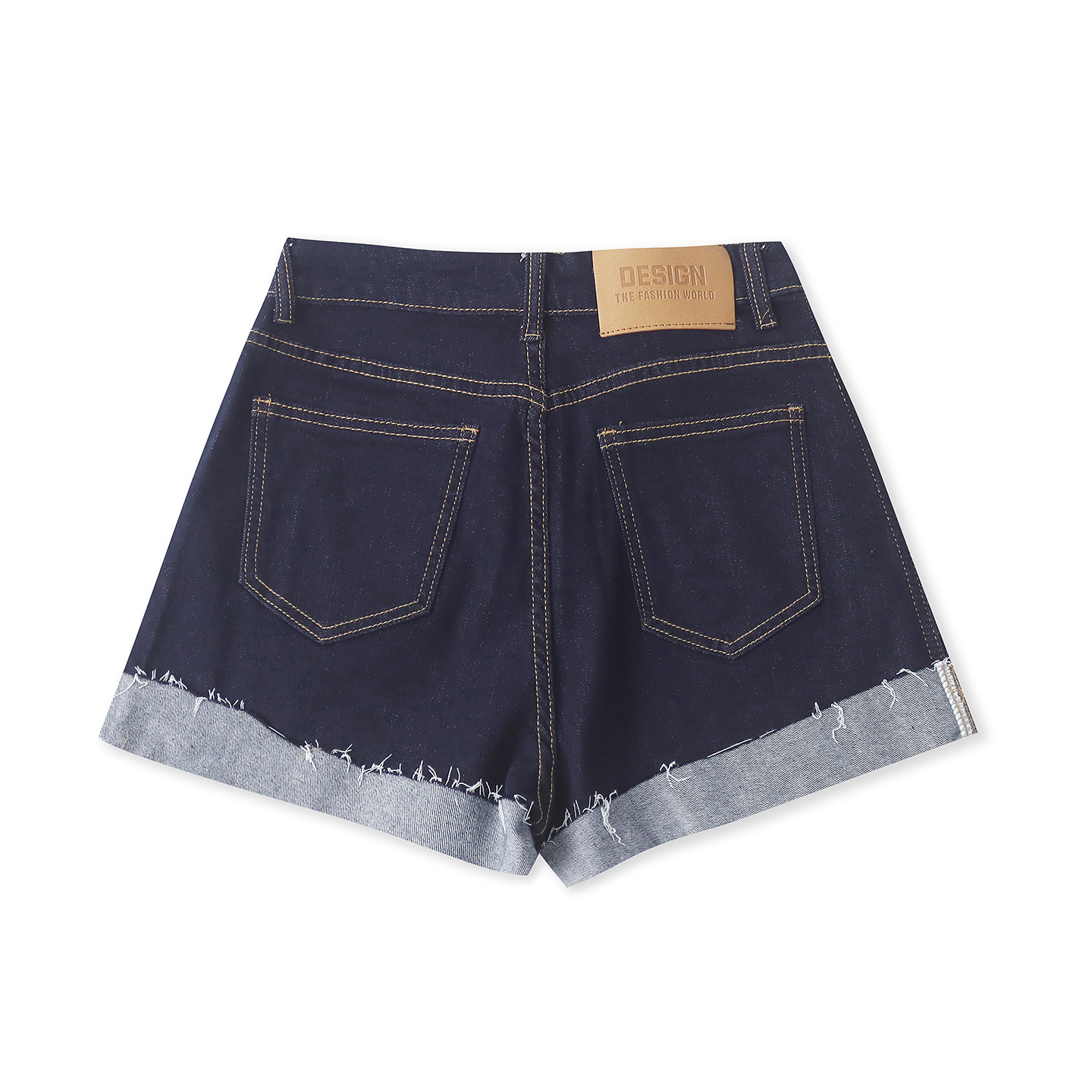 夏季 高腰拉链纽扣阔腿休闲短裤 新款 时尚 33319 女装 毛边牛仔短裤