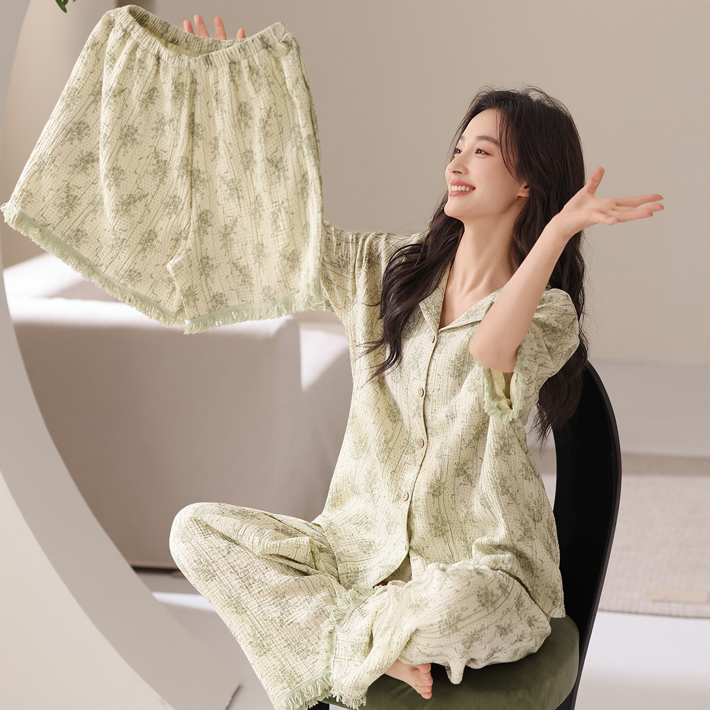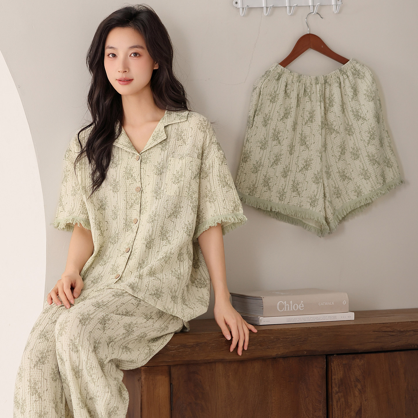 三件套可外穿家居服 长裤 都市丽人2026新云朵棉睡衣女夏季 凉感短袖
