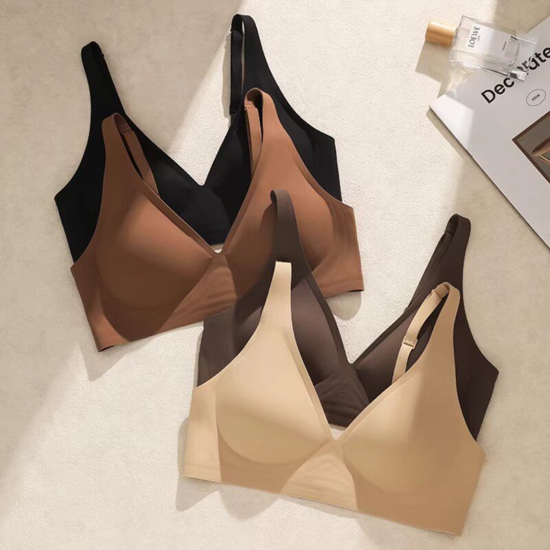 低胸深v无痕内衣女薄大胸显小隐形舒适不勒一片式 裸感无钢圈文胸
