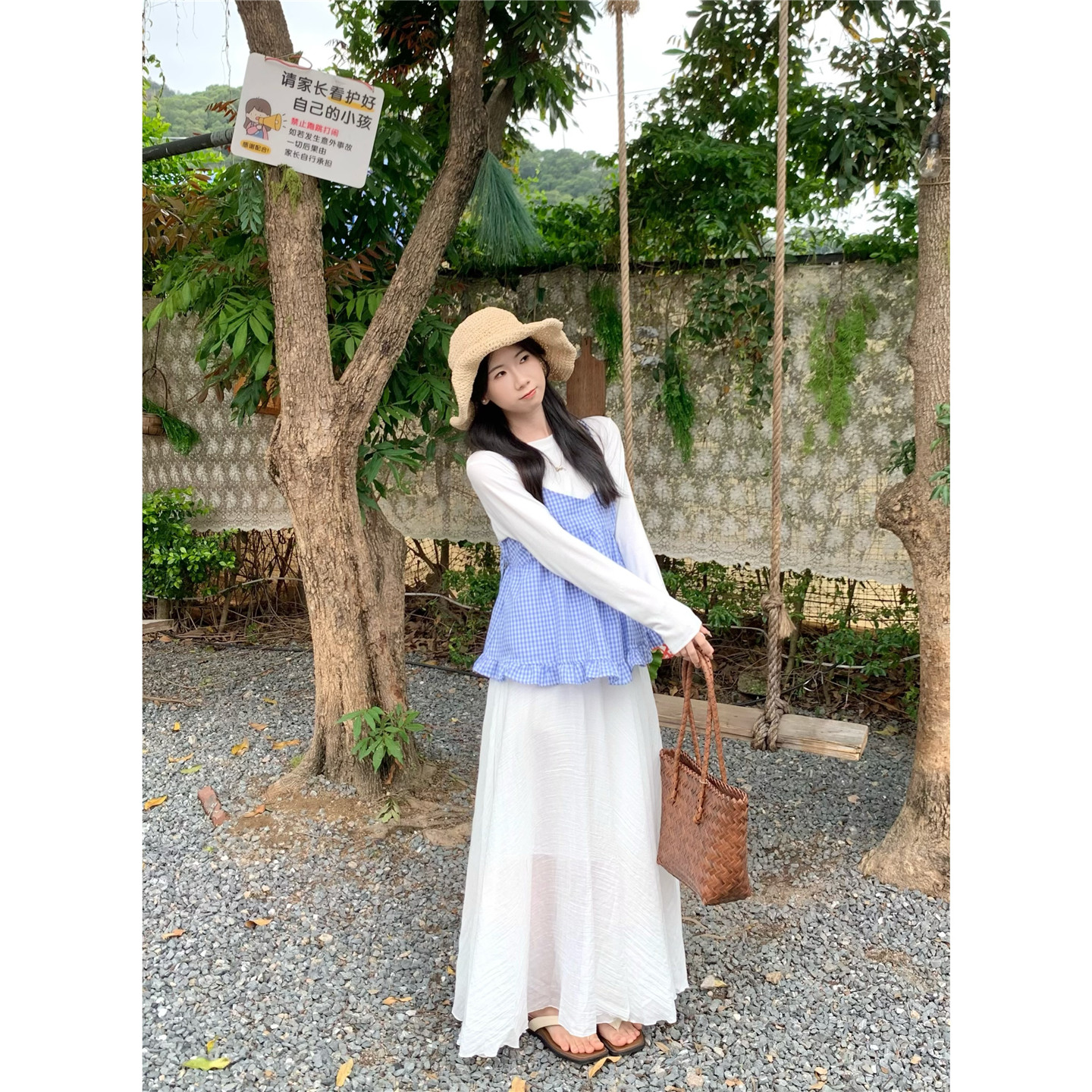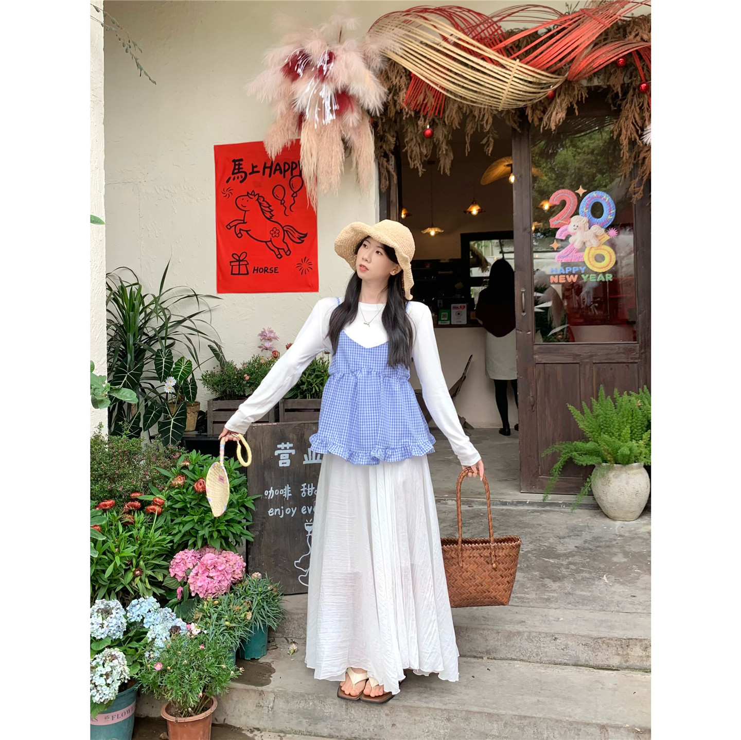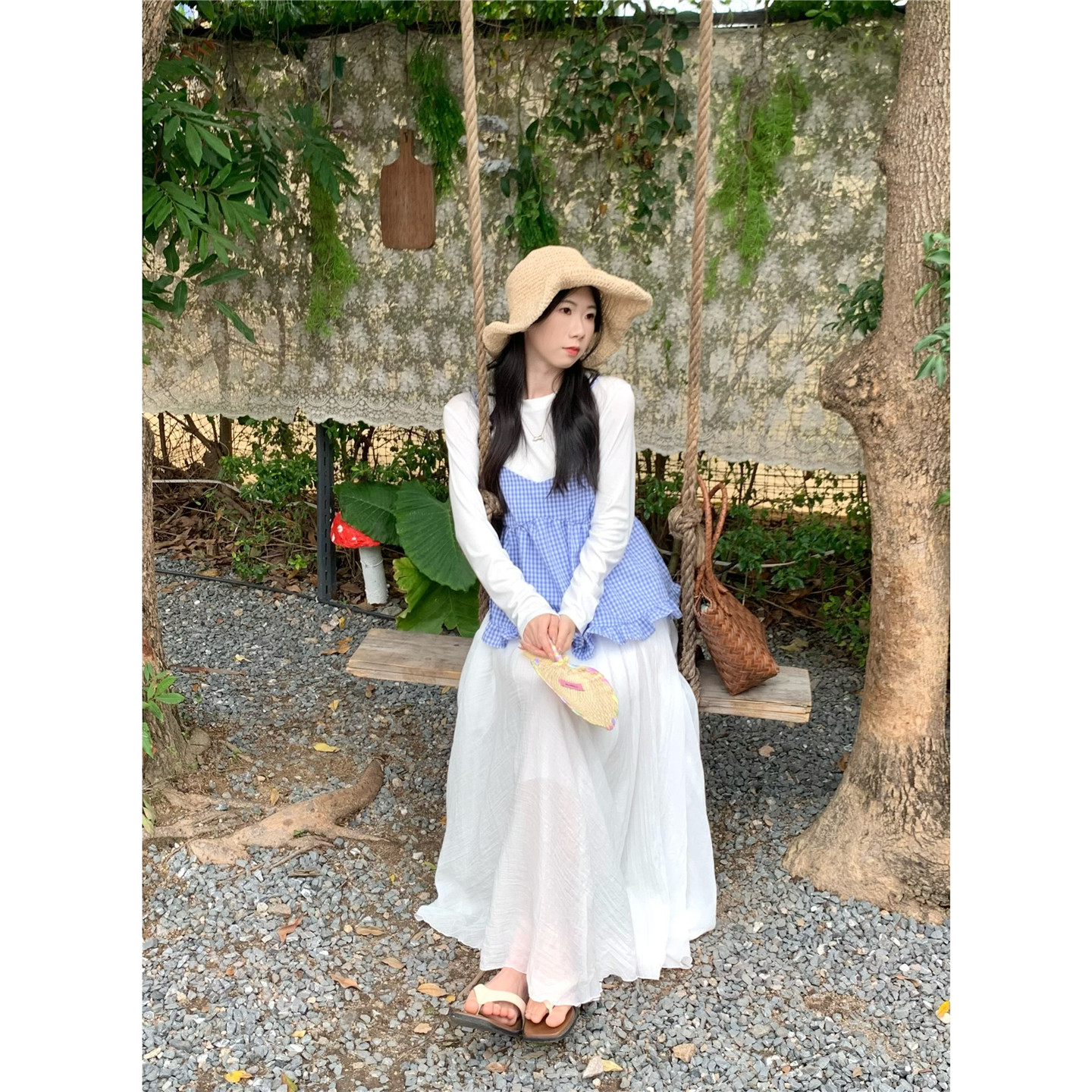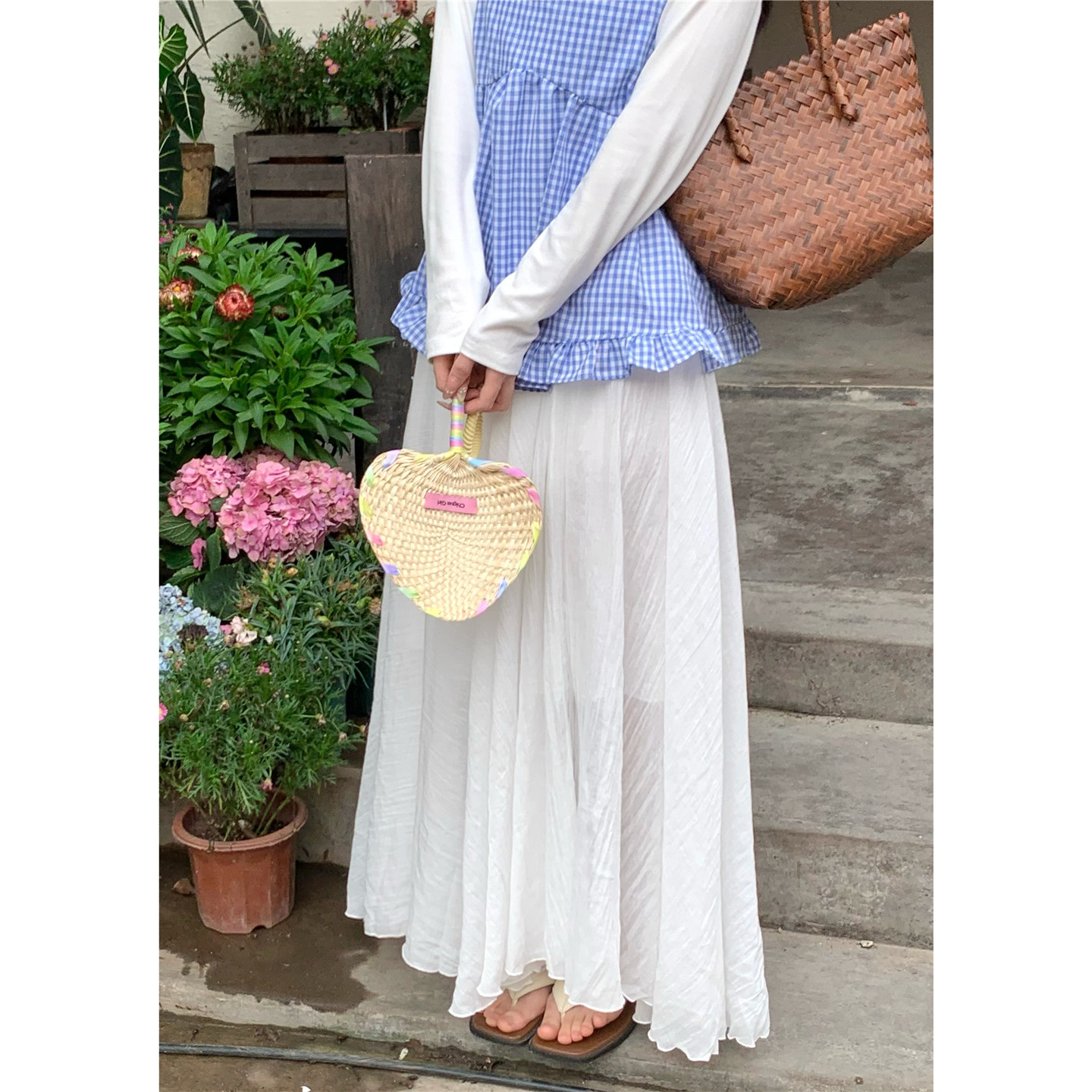 初恋白开水 a字裙女 春夏温柔白色半身裙松紧腰甜美重工垂感中长款