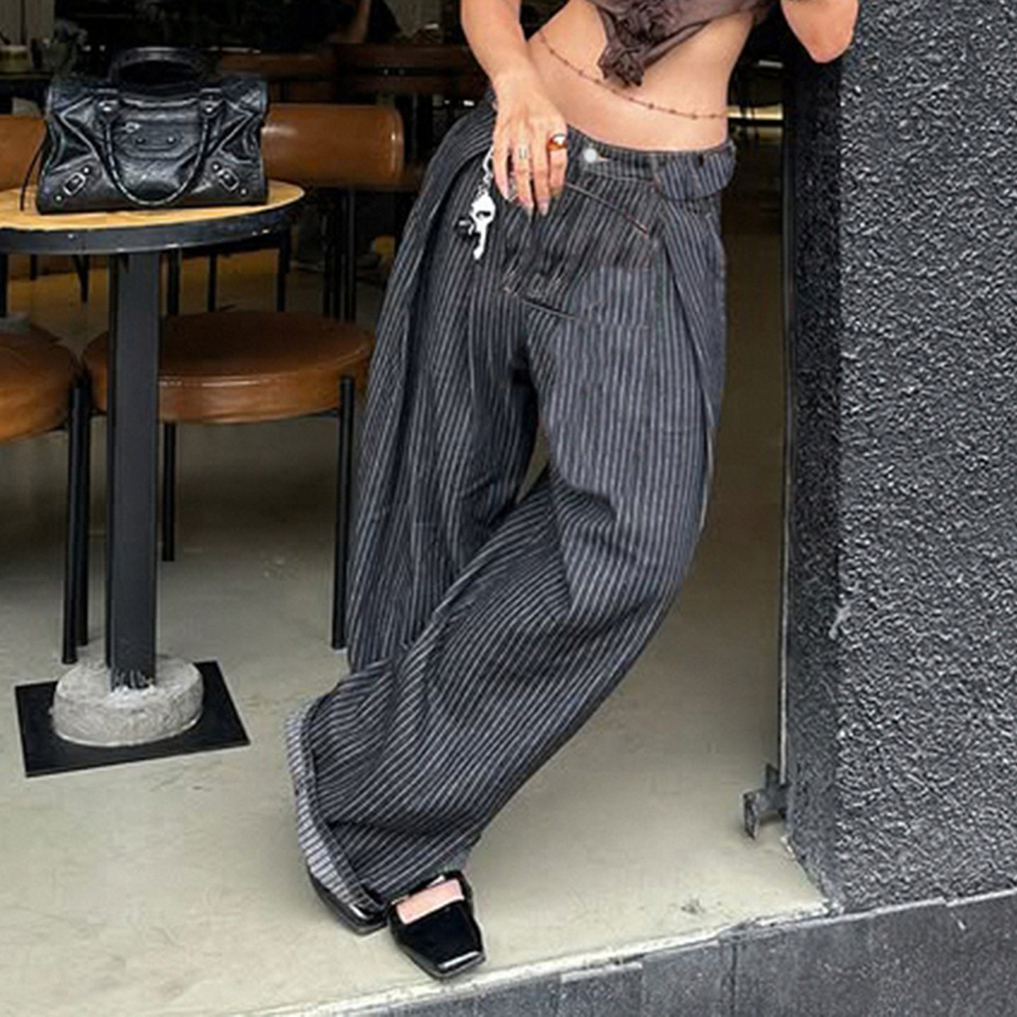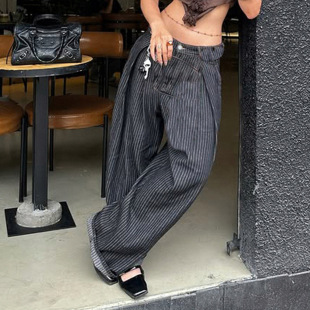 水洗条纹弯刀宽松牛仔裤 Loose Washed Curved Jeans Stripe 秋季