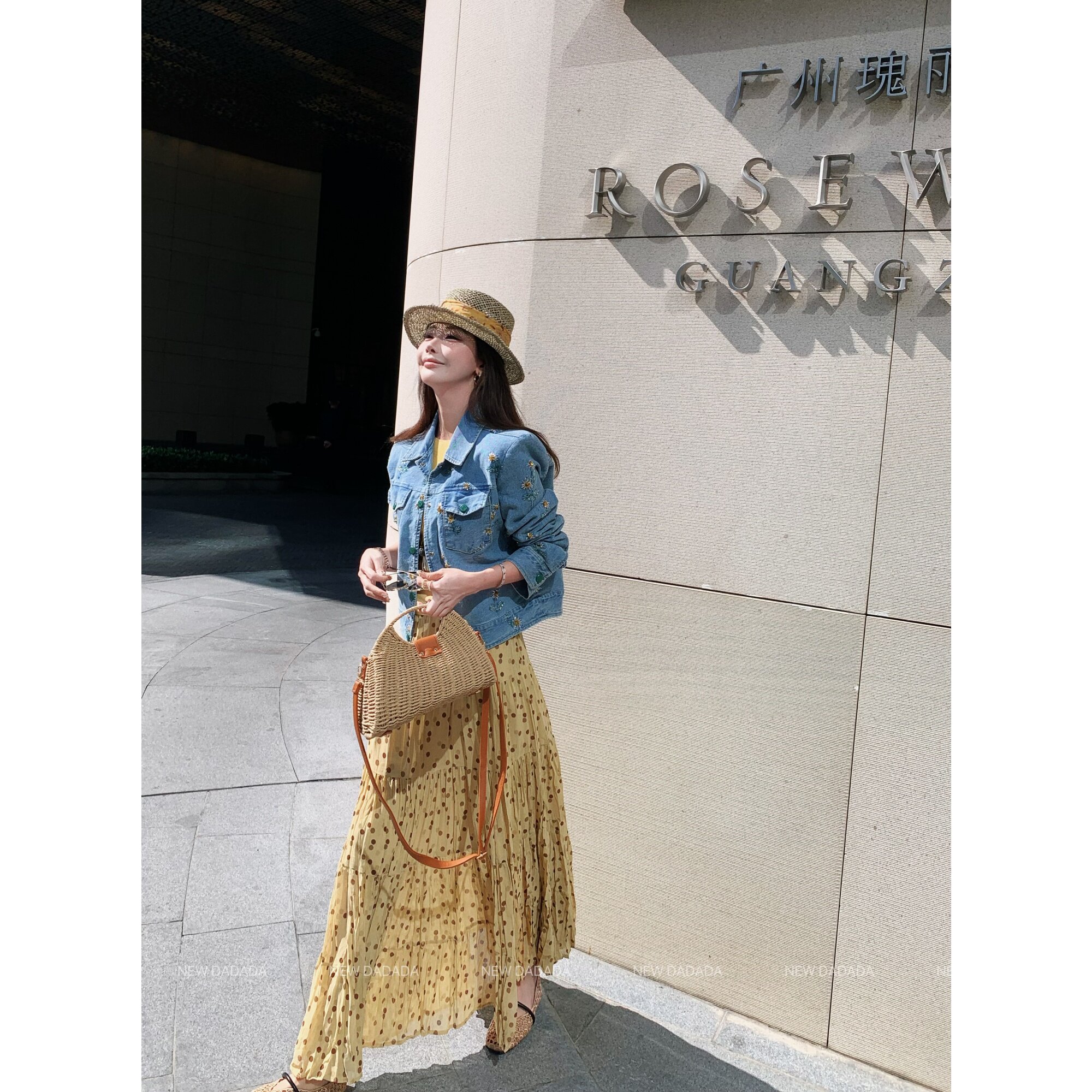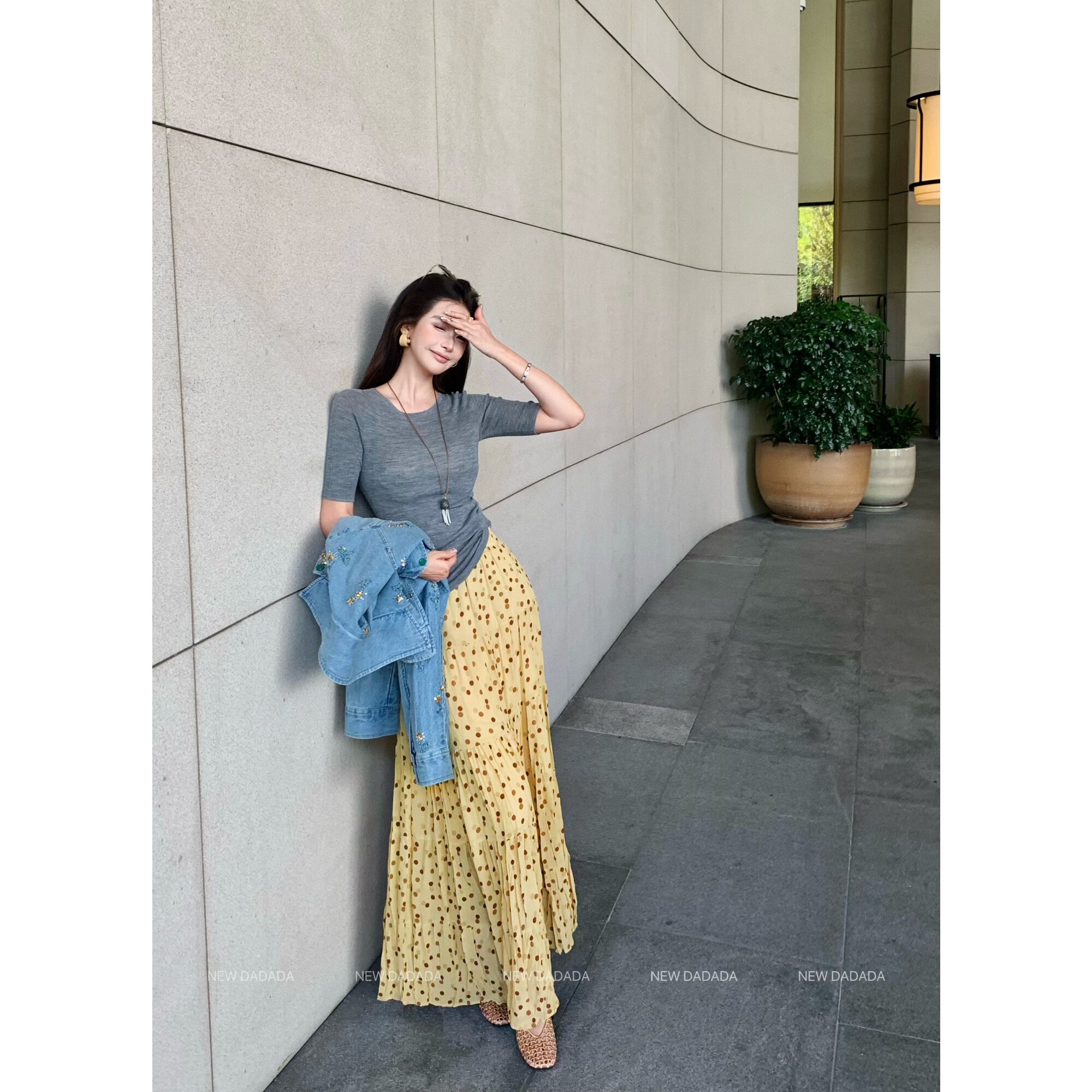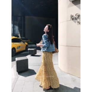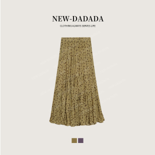春日黄波点 DADADA 复古褶皱波点a字半身裙女蛋糕裙长 NEW 利达