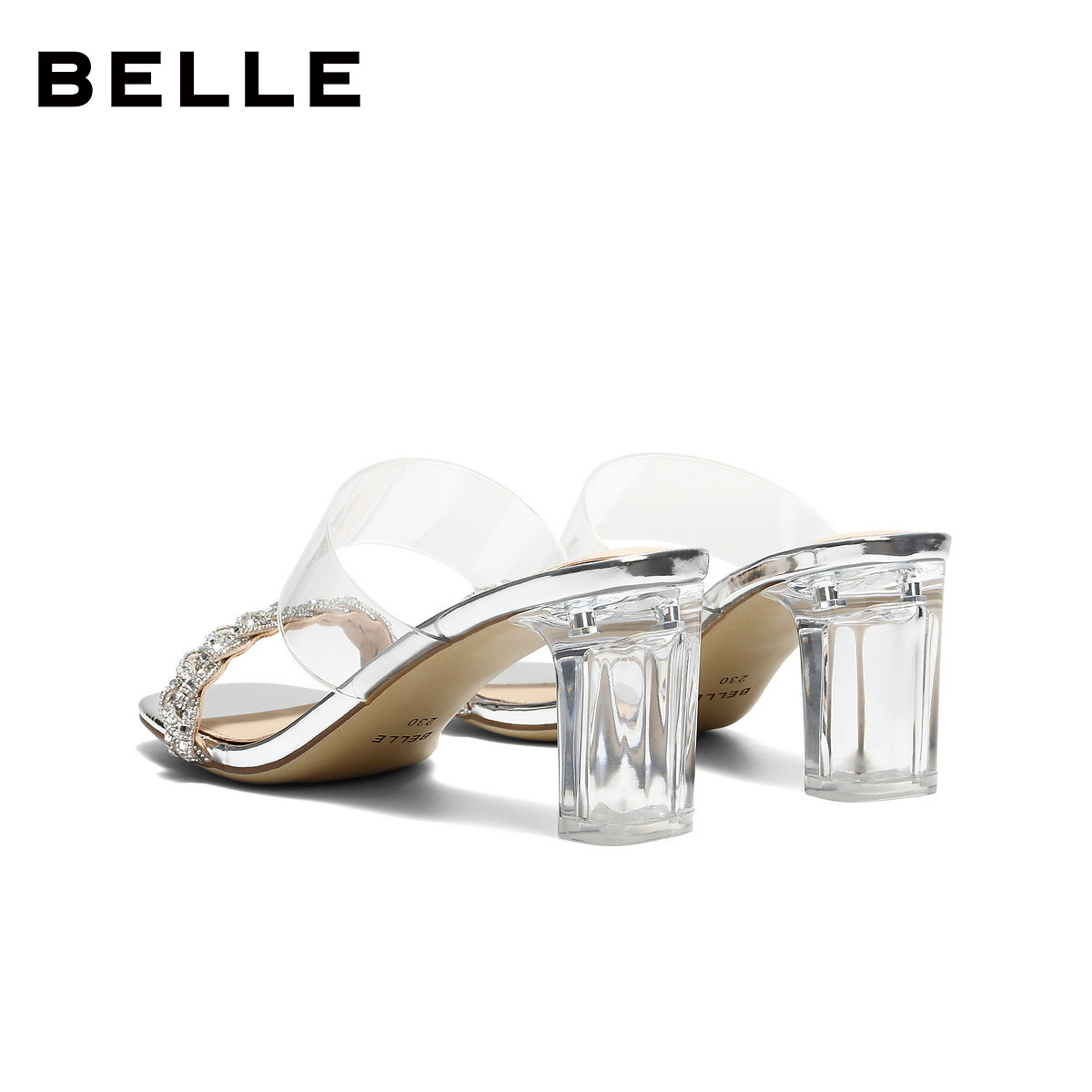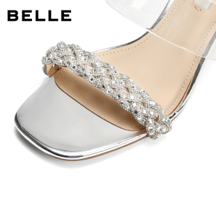 F5A2DBT6 凉拖鞋 百丽优雅高跟水钻一字带拖鞋 女26夏新商场同款