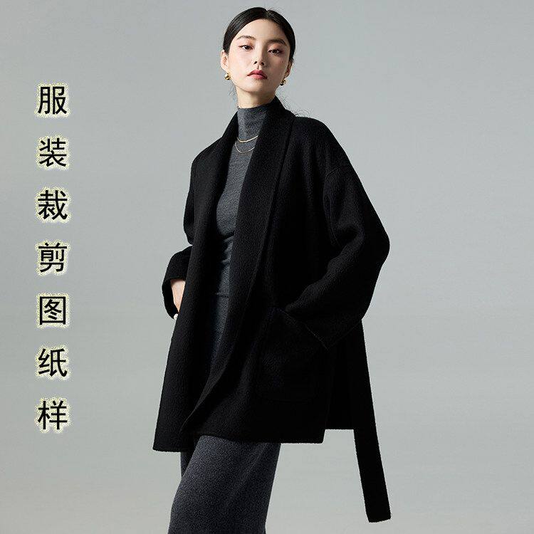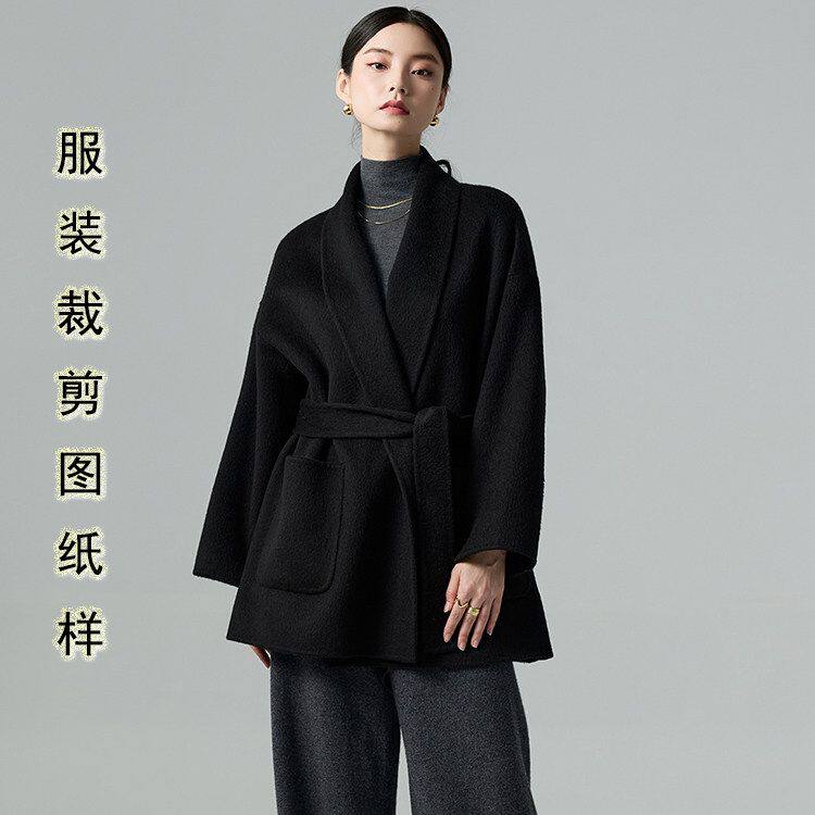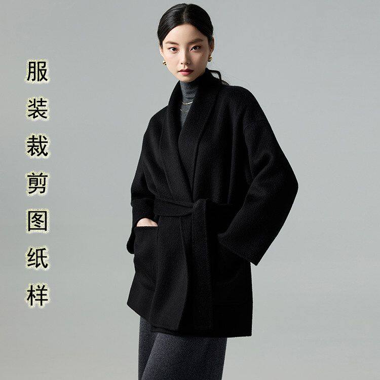 新款 2026冬季 宽松外套裁剪图样板 短款 青果领双面羊绒大衣纸样女装