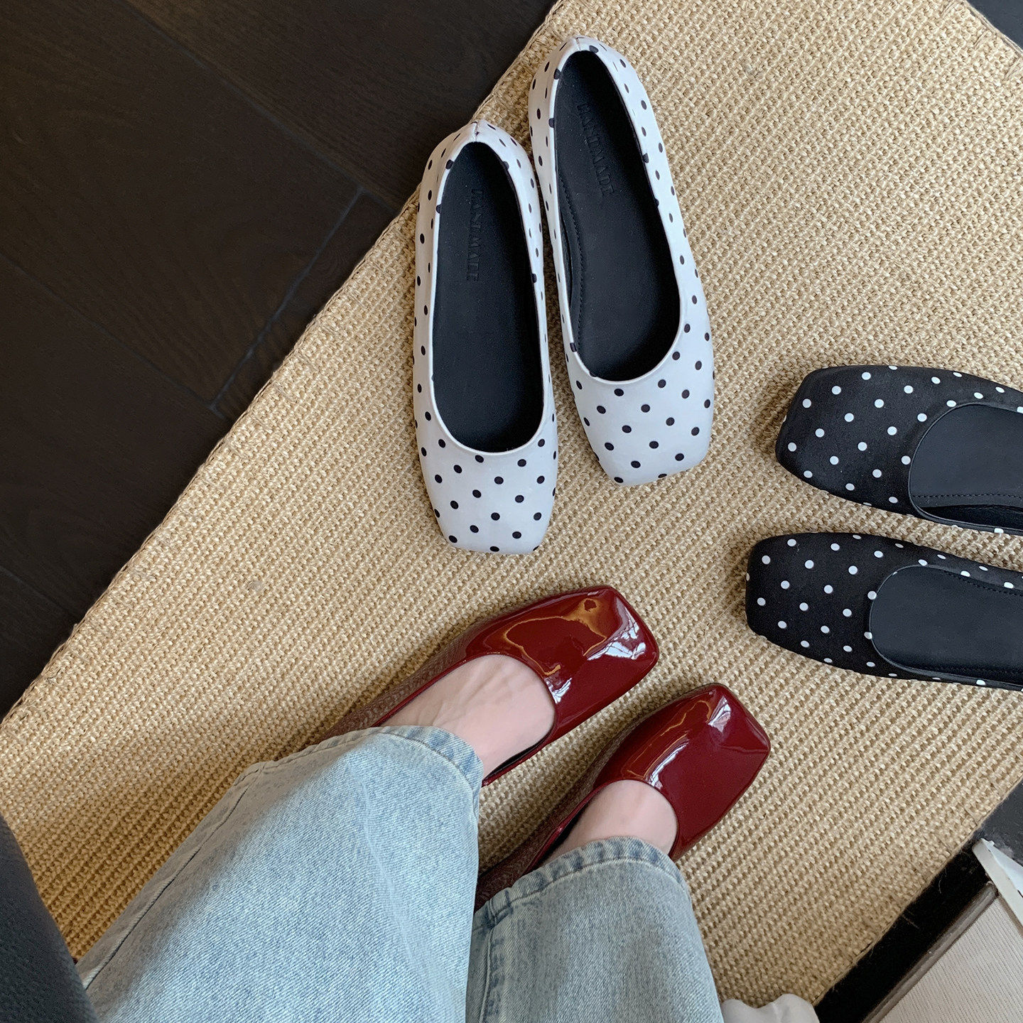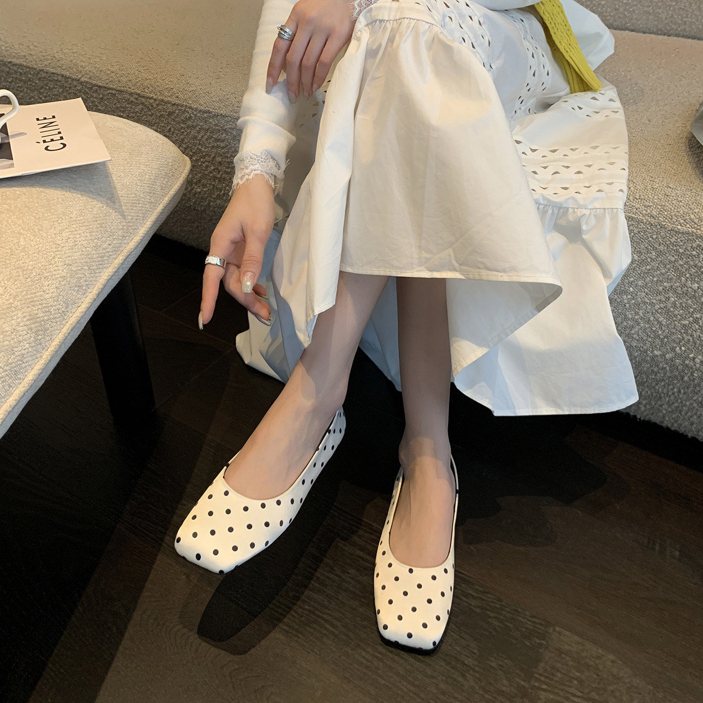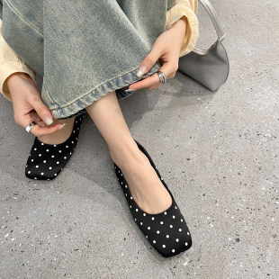 一脚蹬方头百搭波点平底鞋 柚子初单鞋 浅口复古韩版 新款 女2026春季