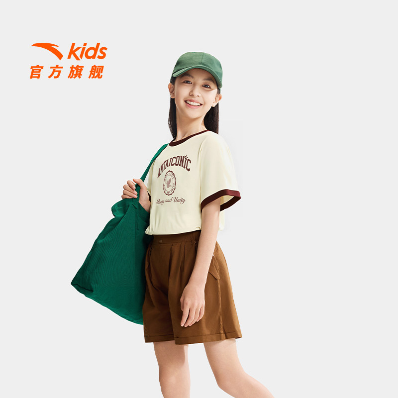 水光棉纯棉短袖 精英文化系列安踏儿童女童短袖 新款 2026年夏季 衫