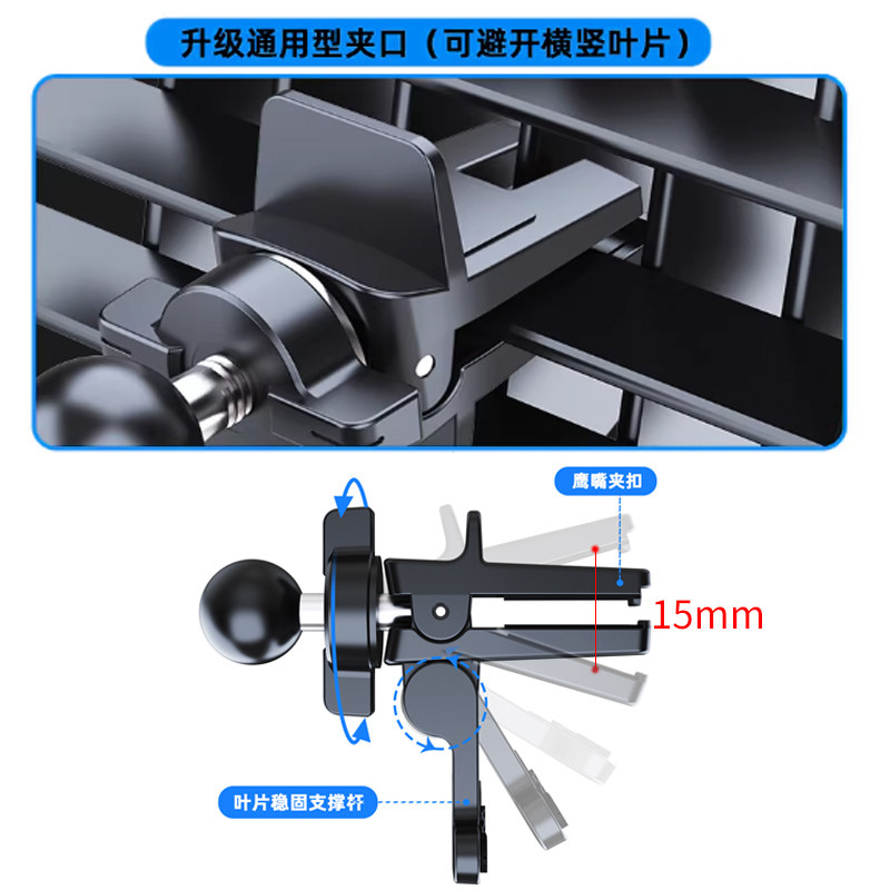 车载手机支架空调出风口旋钮锁紧钩子17mm毫米球头鹰嘴夹子底座