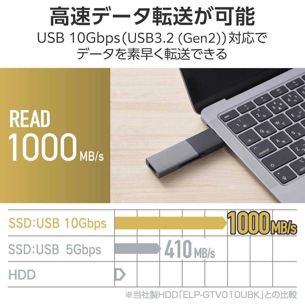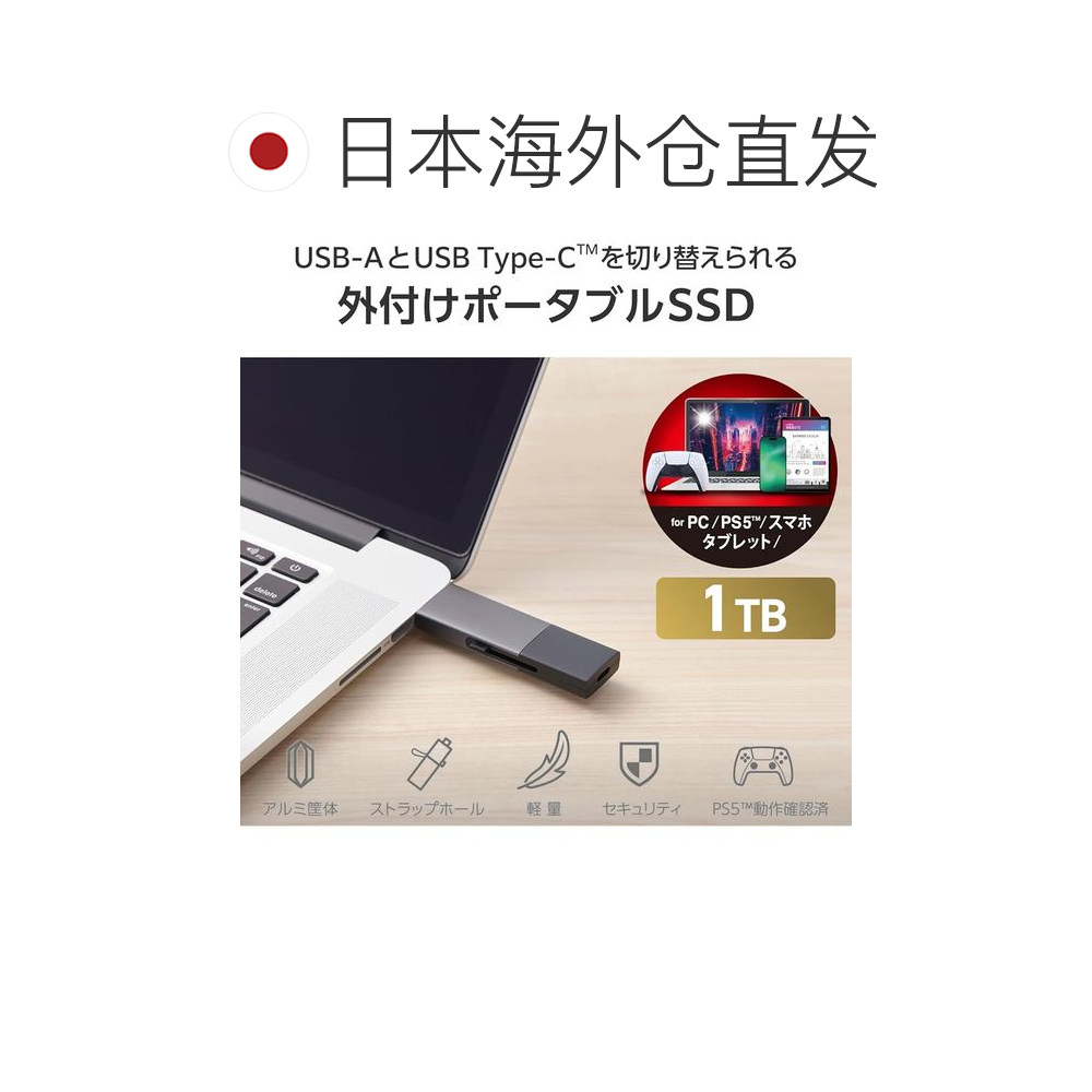 1TB USB3.2 Gen2滑盖 宜丽客外置SSD Type A切换 日本直邮