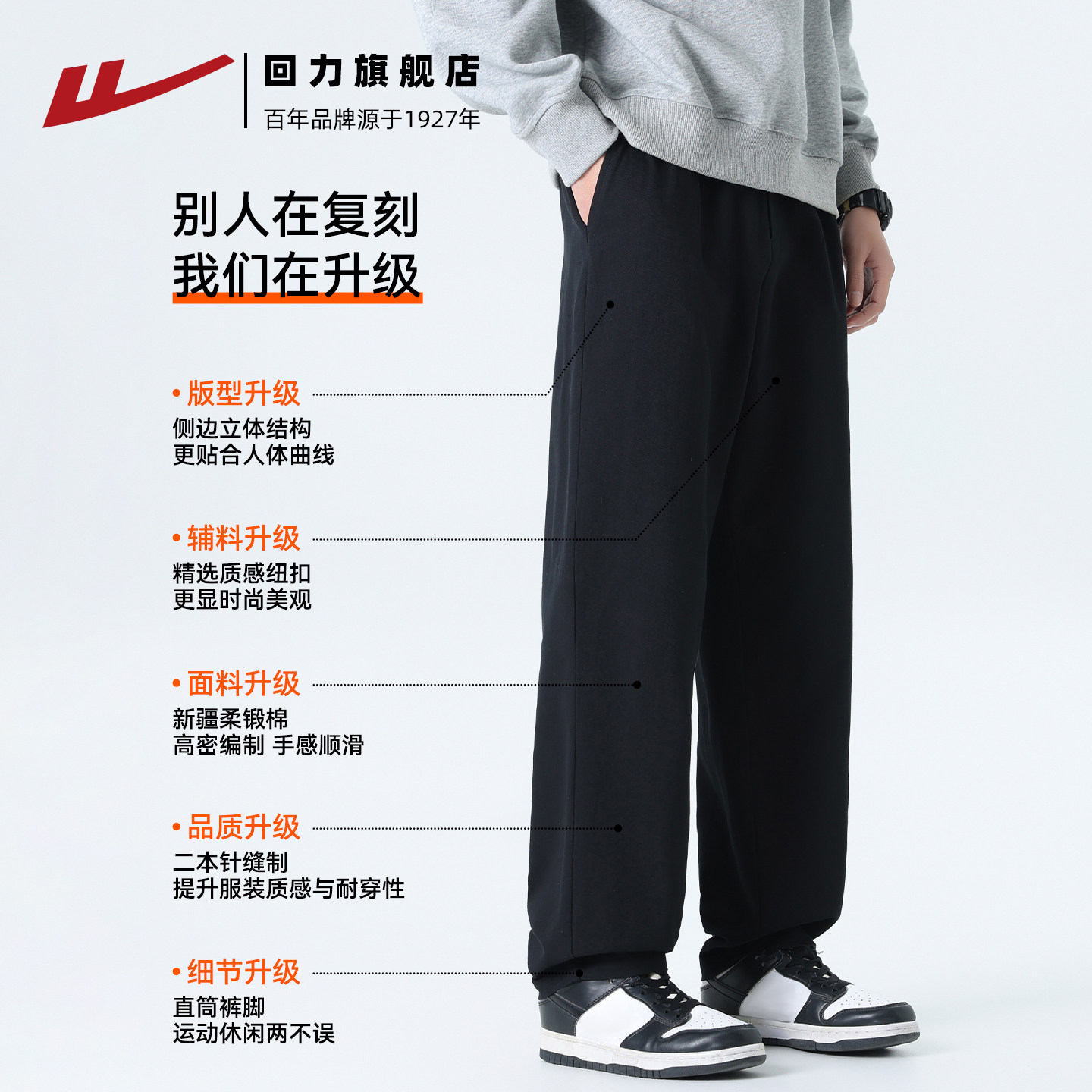 新款 男士 长裤 裤 垂感休闲裤 子男2026春季 运动裤 回力纯棉工装 直筒裤