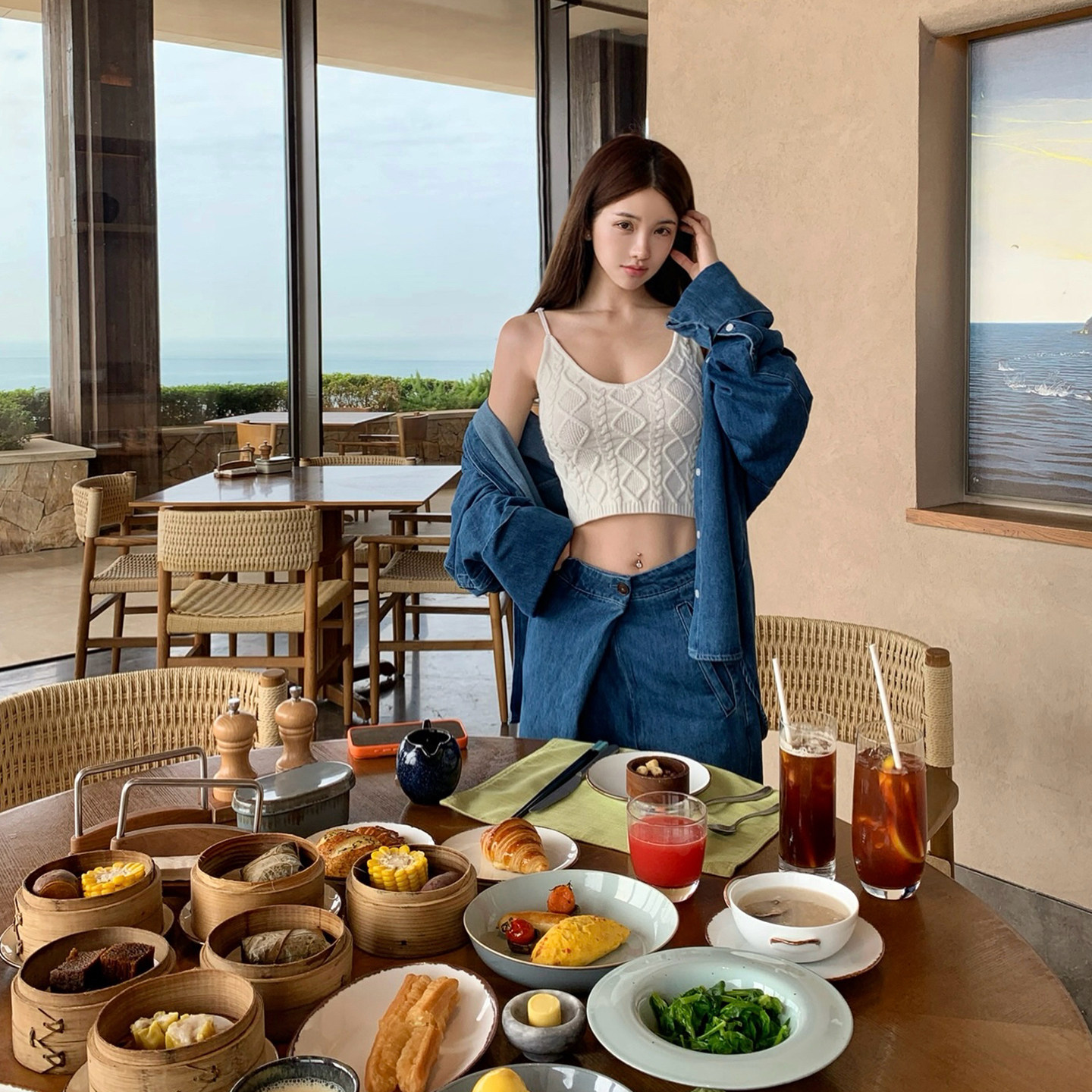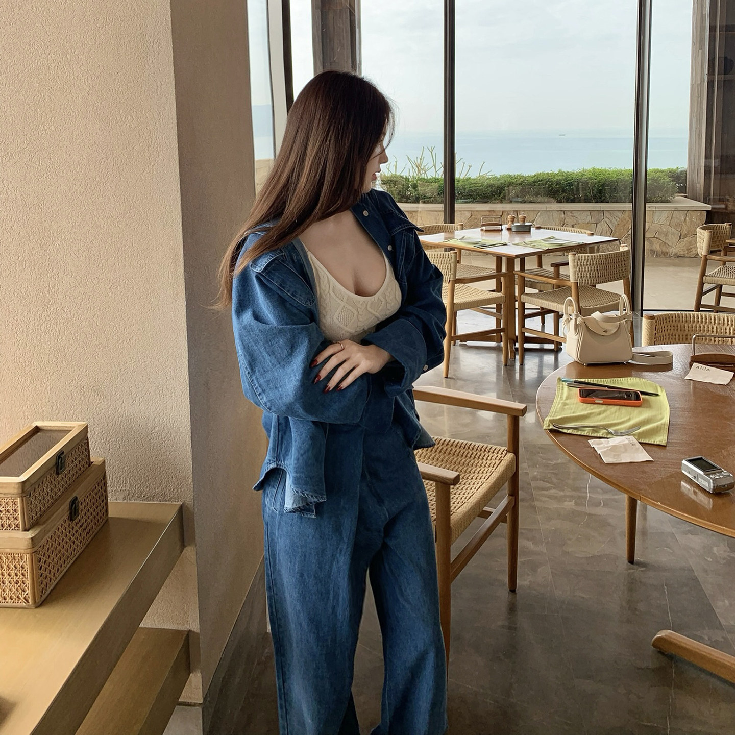 牛仔套装 chill柔软宽松外套休闲裤 两件套女 假日游记 PickRui睿哥
