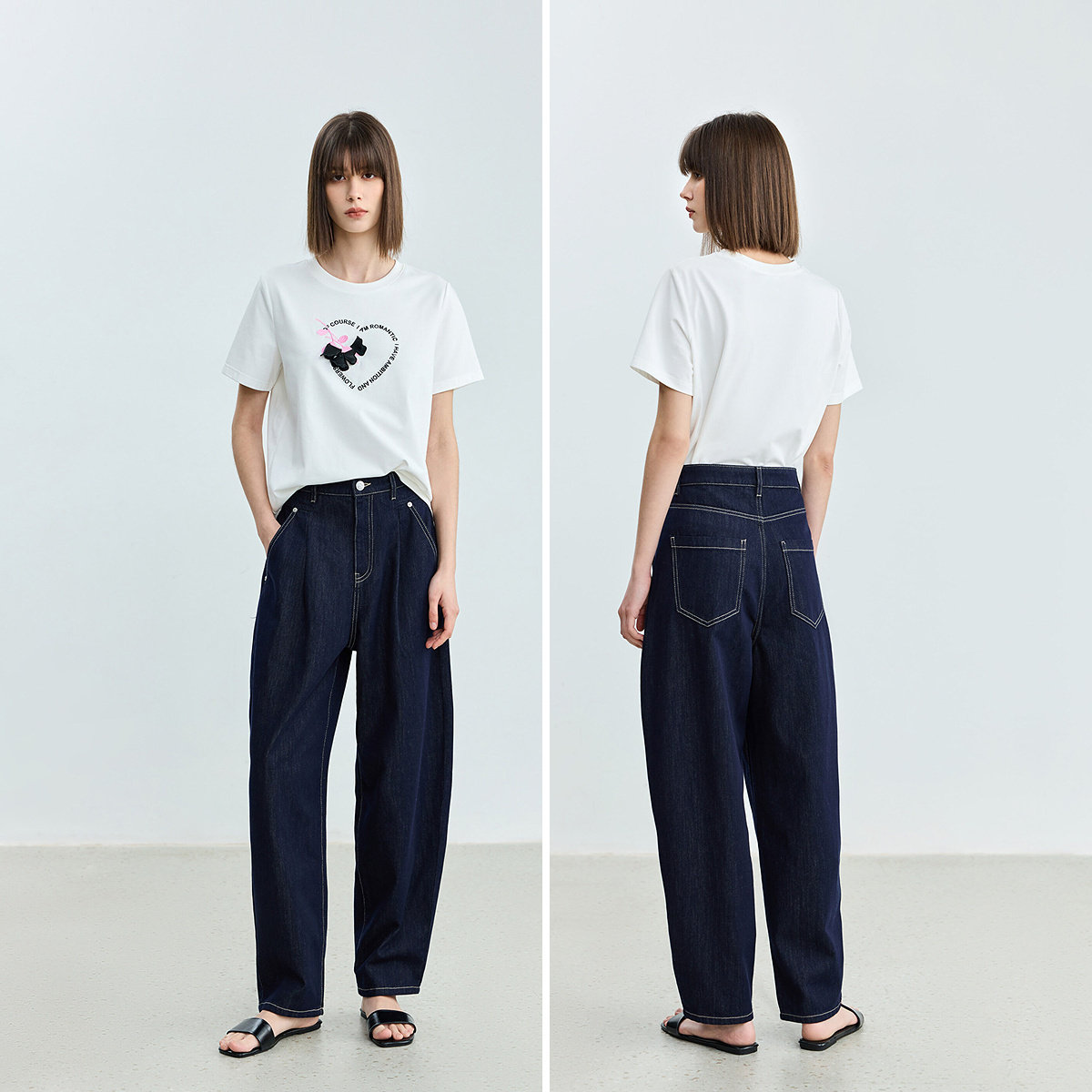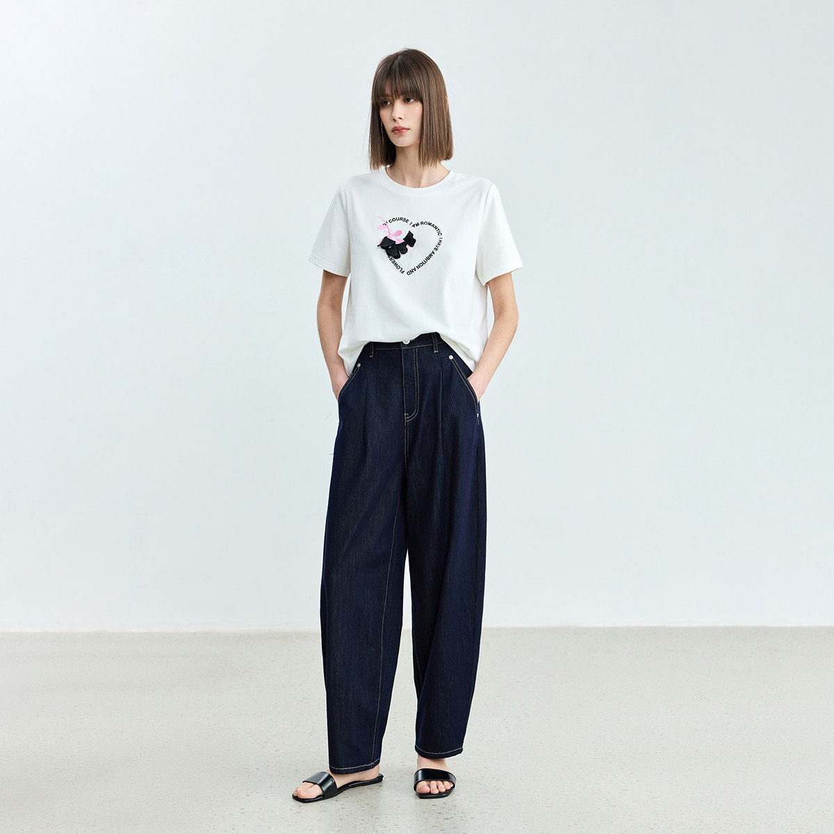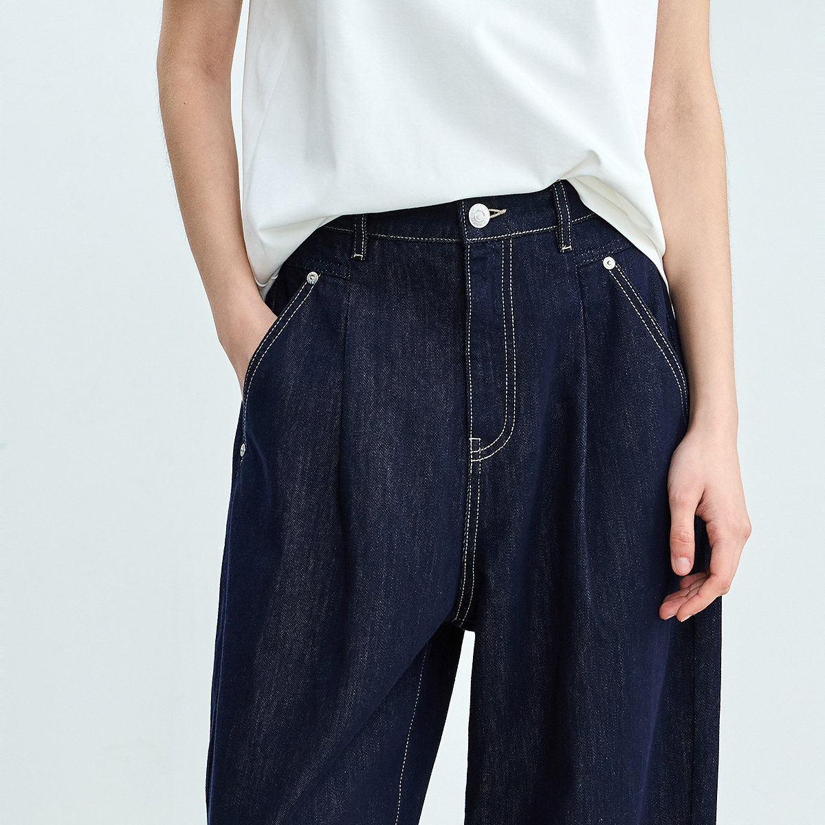 女长裤 香蕉裤 含莱赛尔高腰复古宽松休闲深色牛仔裤 LILY2026夏新款