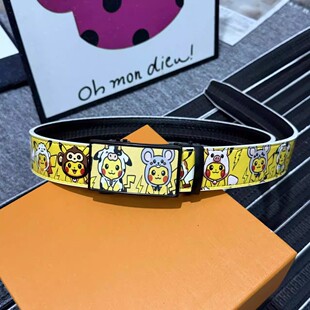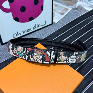 休闲百搭自动扣 涂鸦牛仔裤 2025年新款 皮带腰带全卡槽印花字母男士