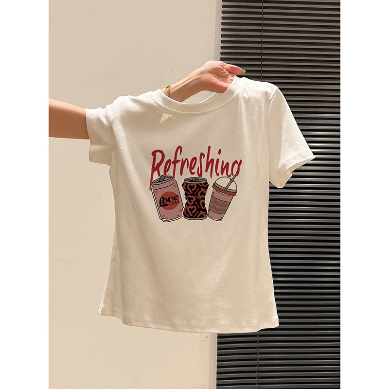 胖mm显瘦白色韩版 正肩短袖 女装 大码 慵懒松弛感上衣 t恤女2026新款
