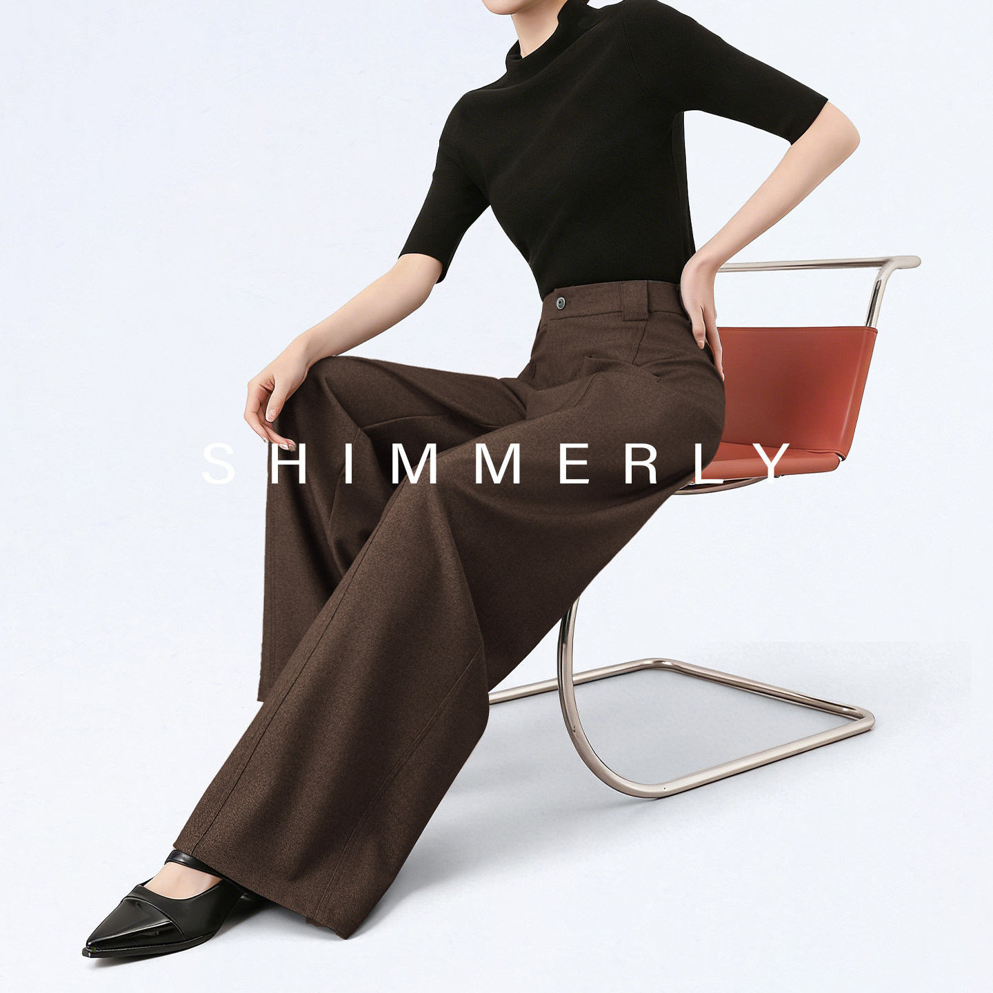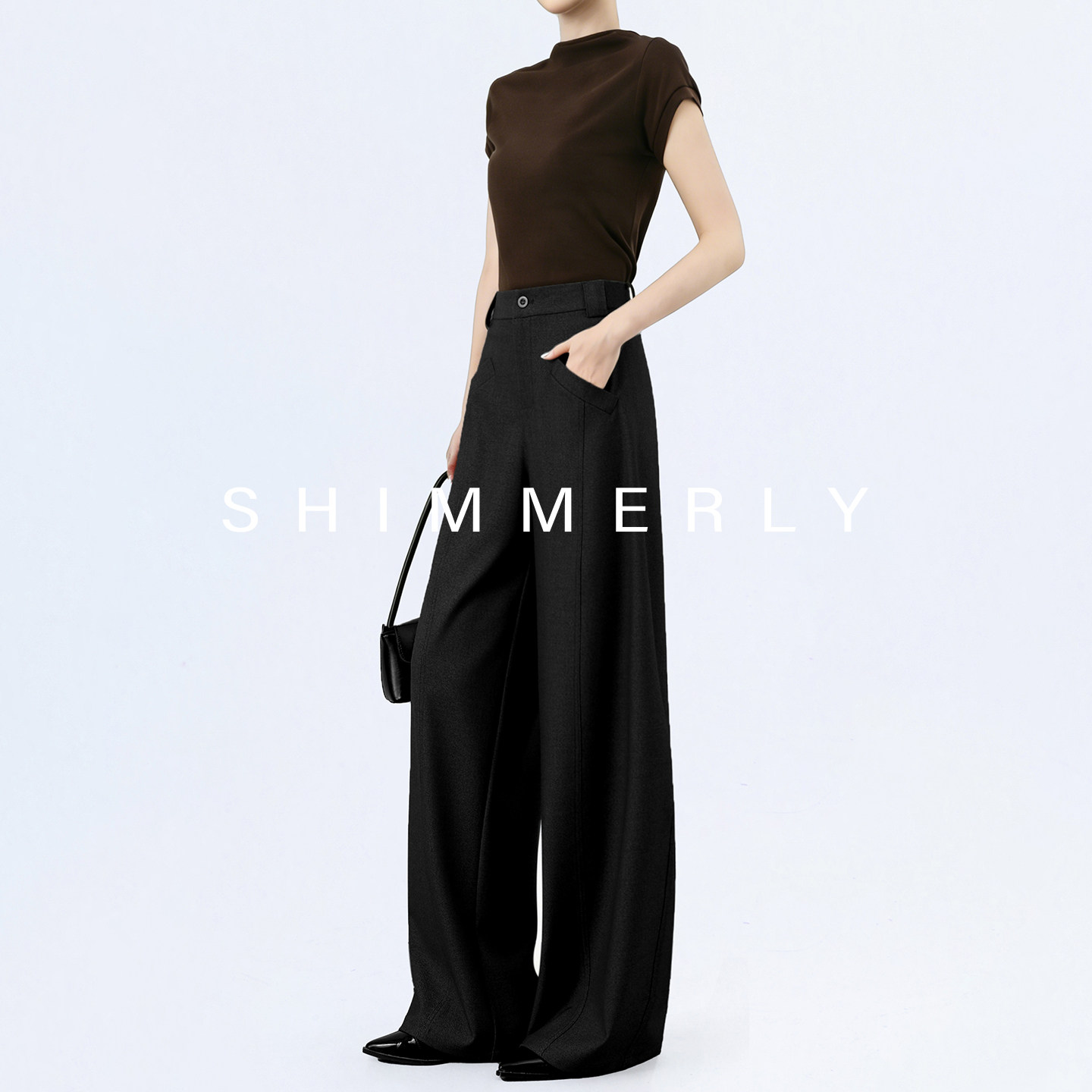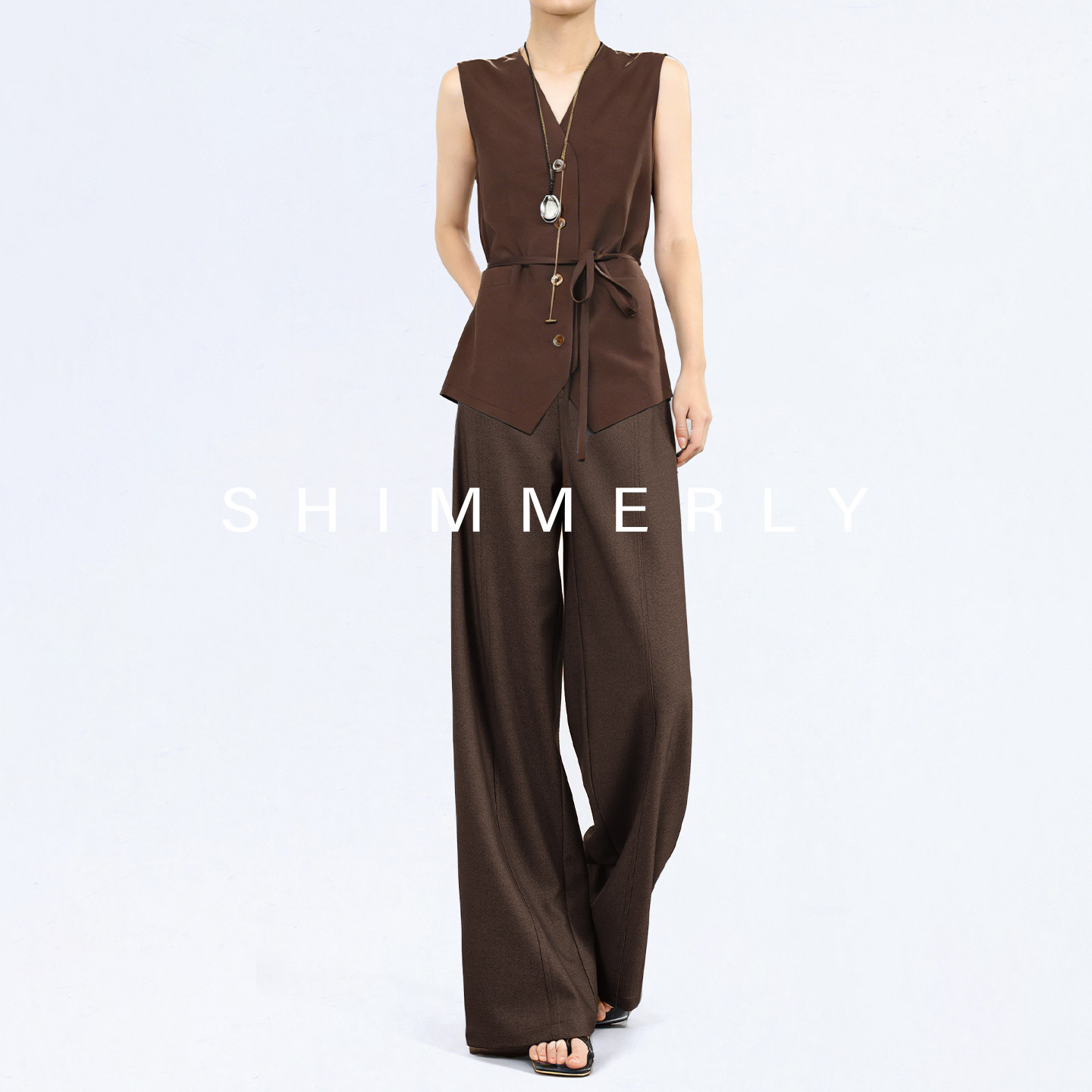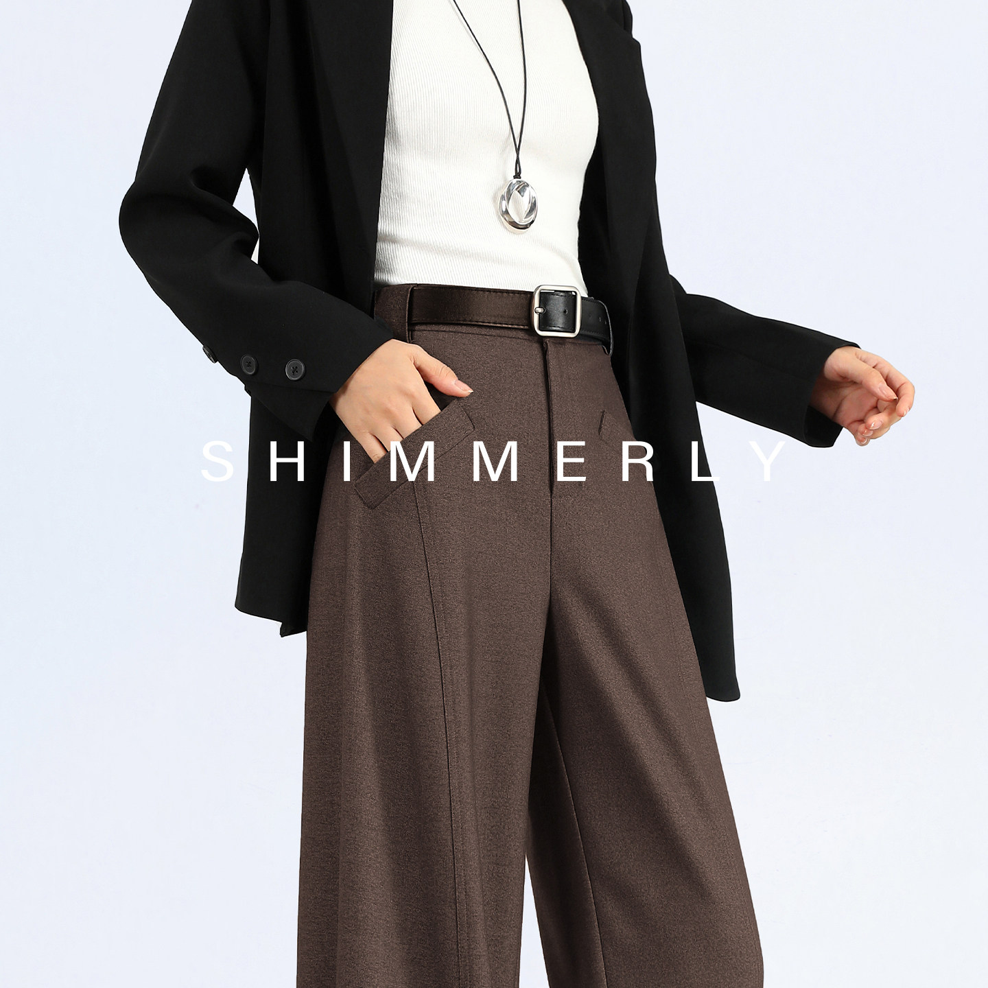 拉腿特效 直筒垂感阔腿裤 咖色莱赛尔西装 醋酸高腰弯刀裤 女春 裤