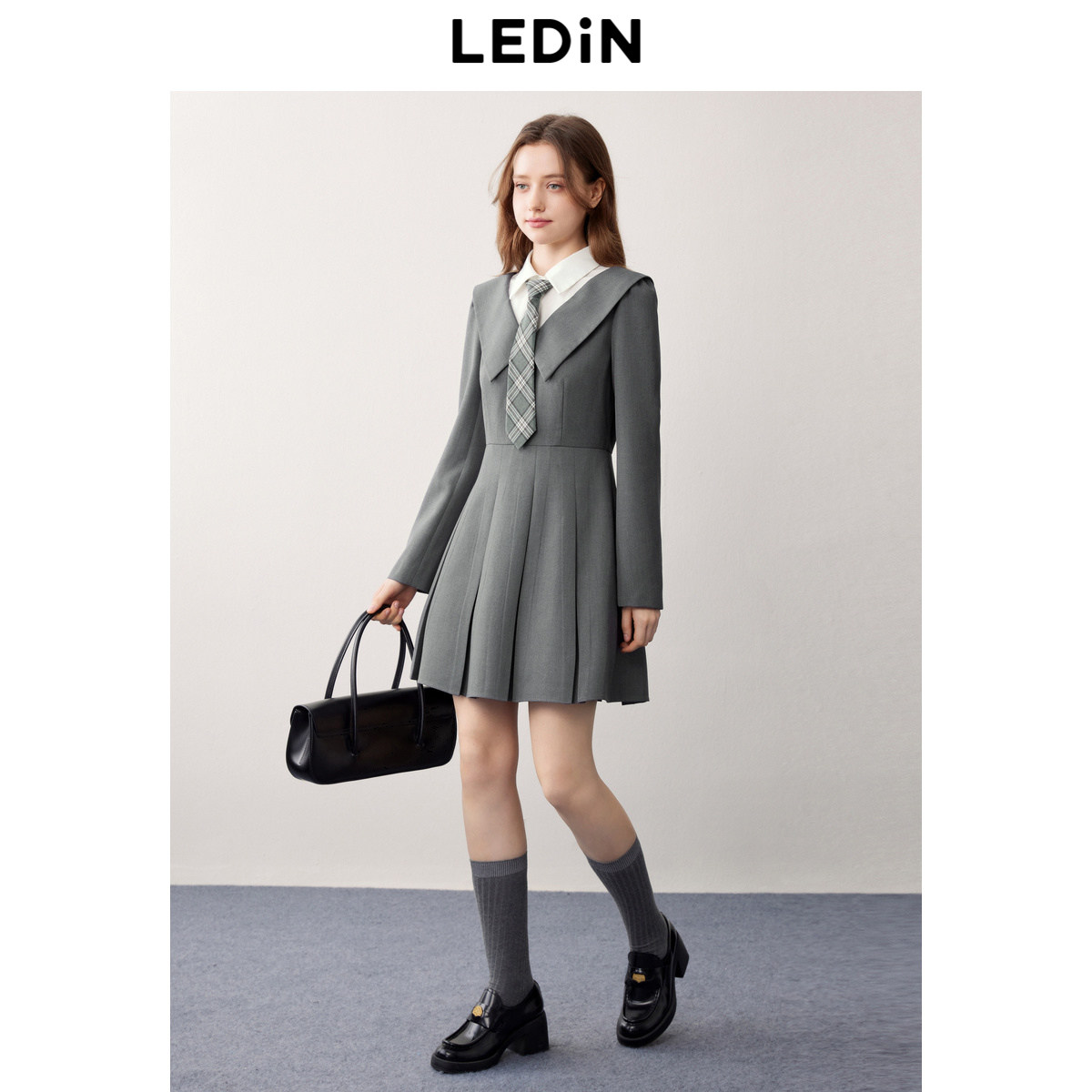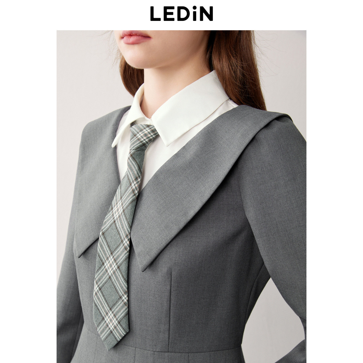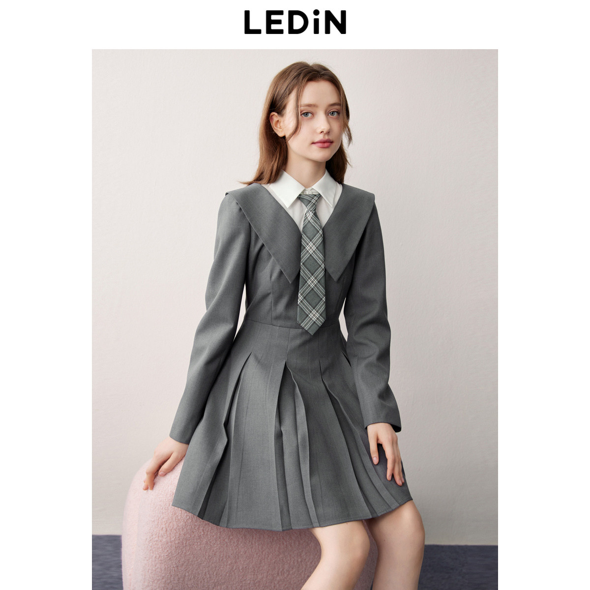 裙格雷系西装 乐町JK学院风百褶裙春季 假两件长袖 衬衫 裙 新款
