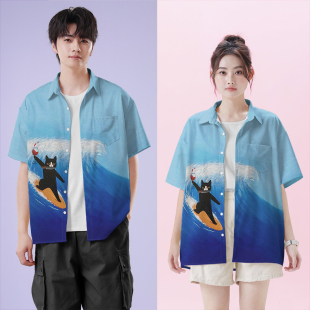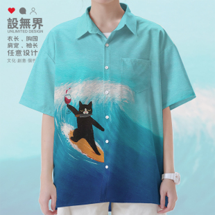 男女设 衬衫 无界 短袖 神经奶牛小猫咪宠物黑白猫冲浪红酒杯子大码