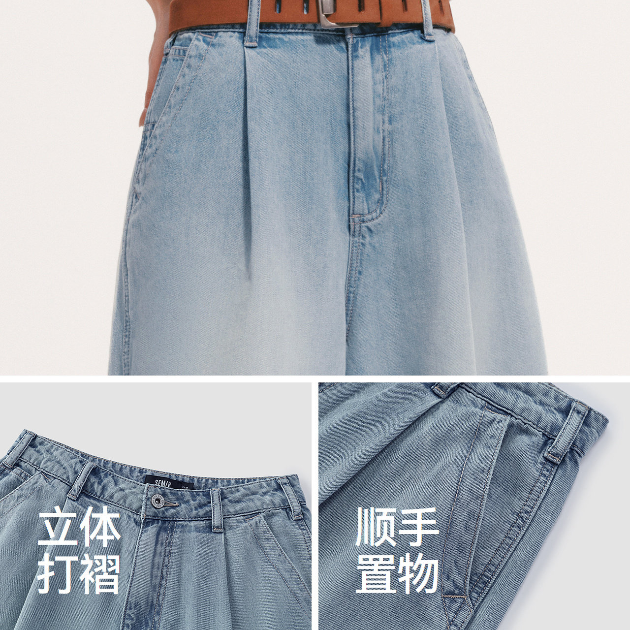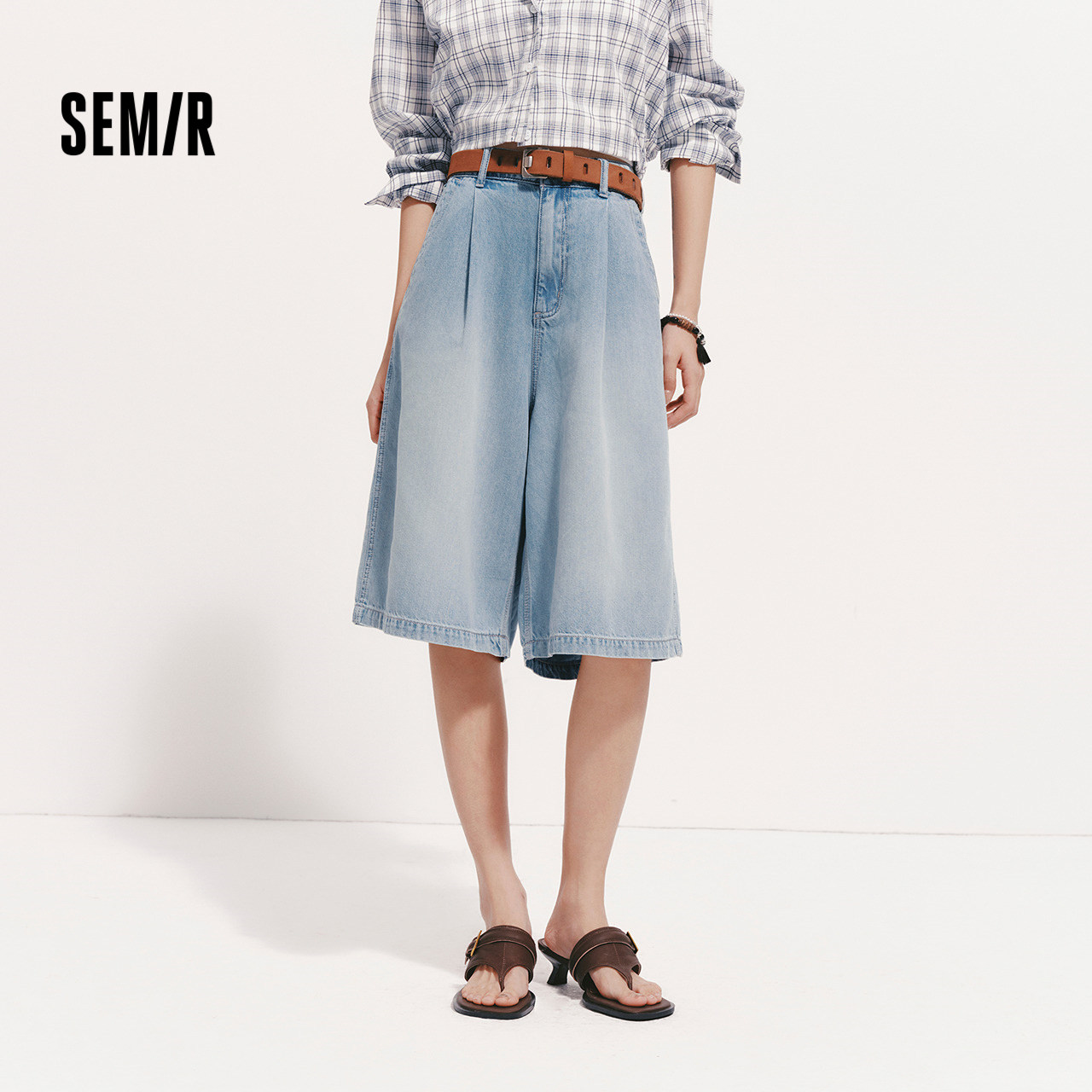 潮流女生遮肉五分裤 森柔 凉感宽松打褶2026新款 女夏季 森马牛仔裤