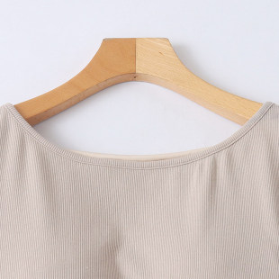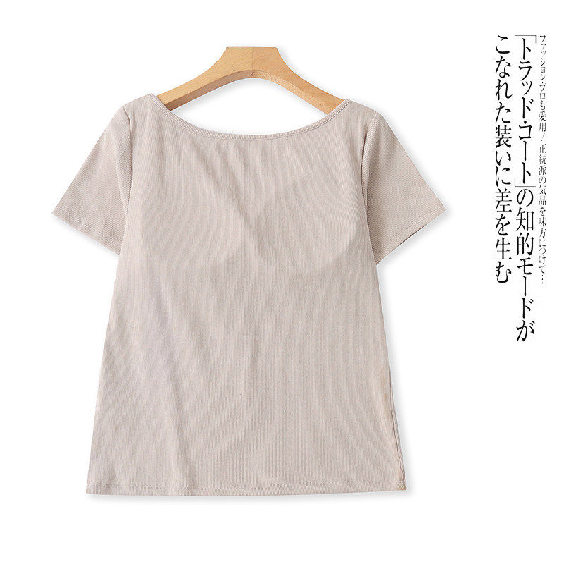 时尚 圆领套头连文胸修身 上衣 T恤春夏新款 B5262外贸日单女士短袖