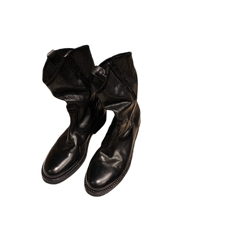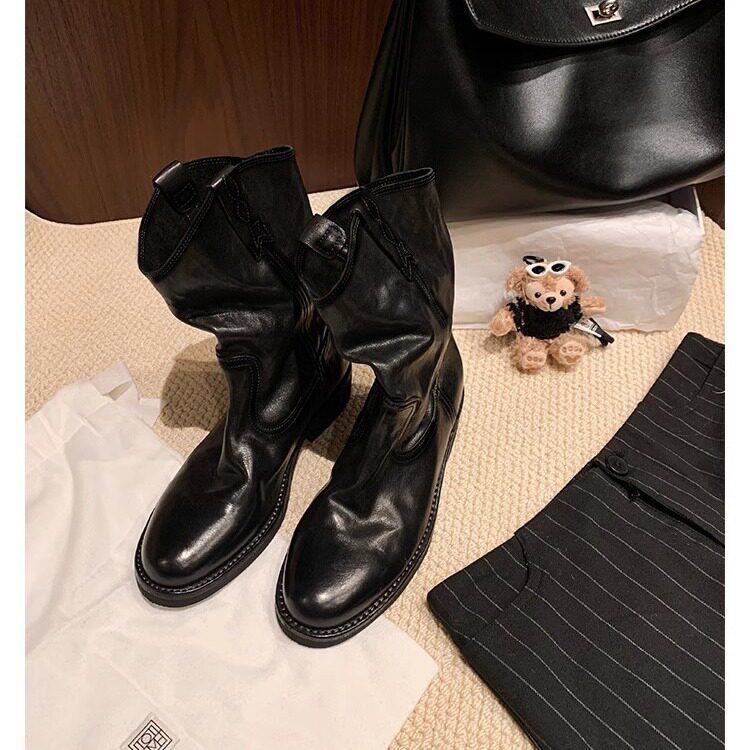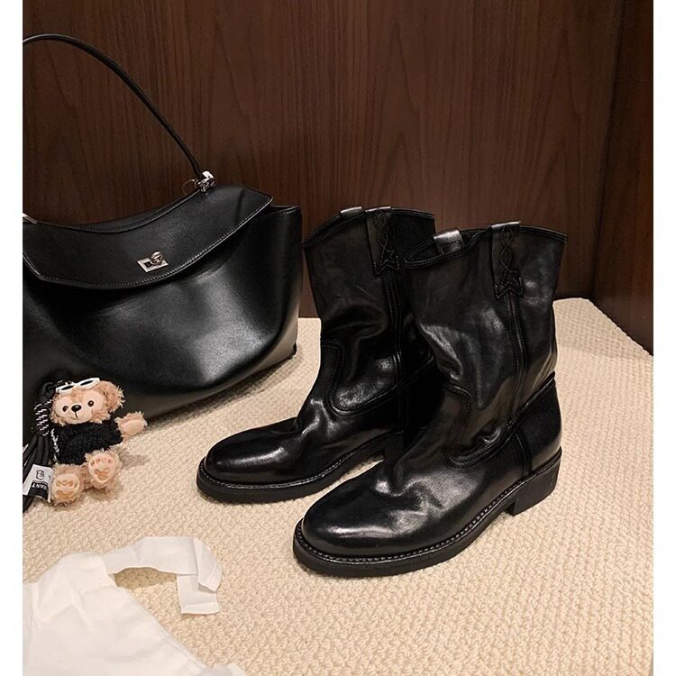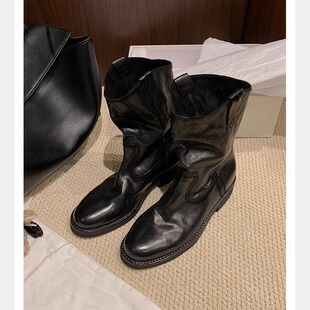 葡萄妈同款 真皮V口西部靴粗跟短靴女沙漠靴子2025秋冬 伯克公路