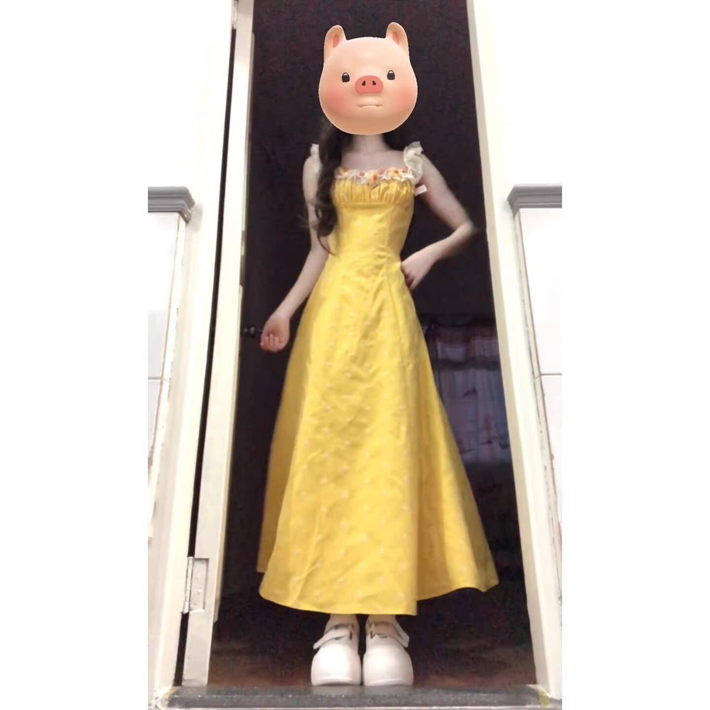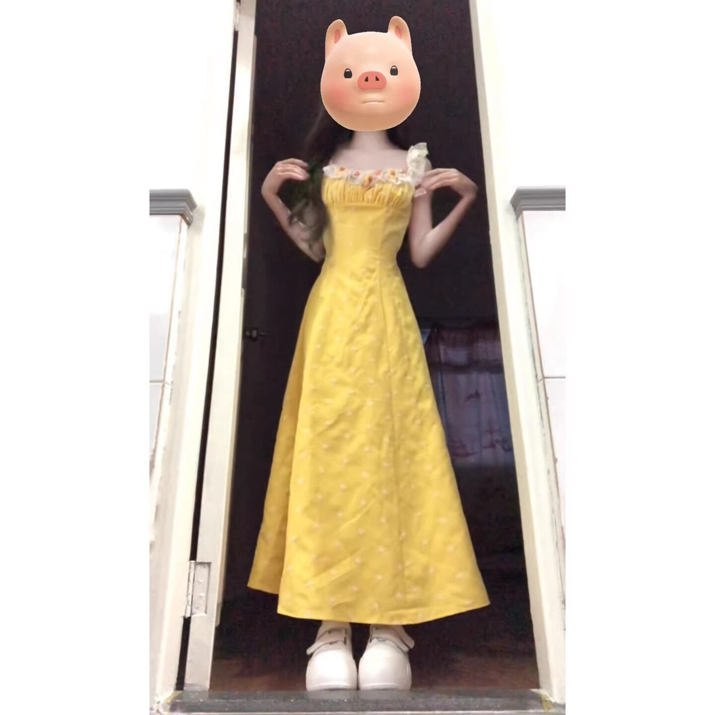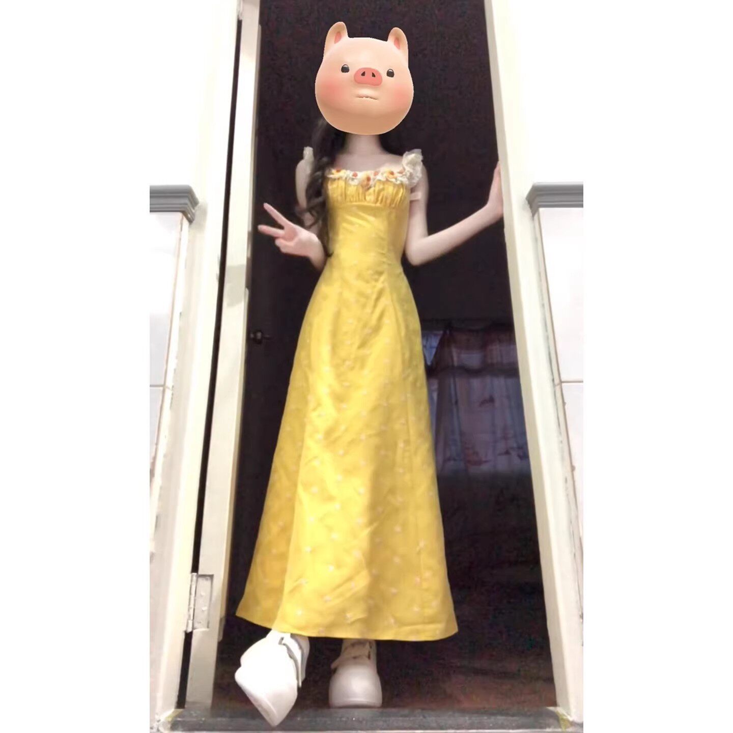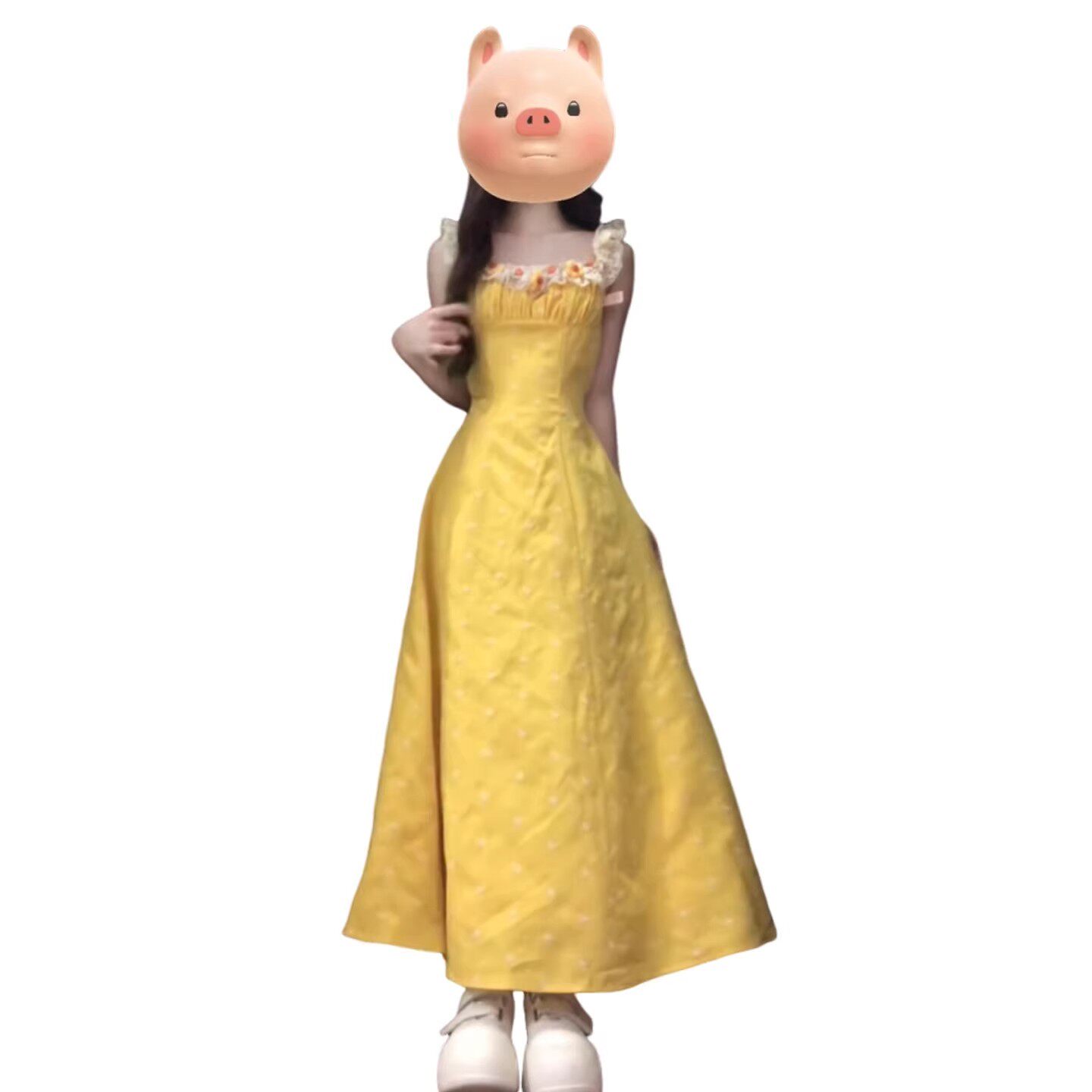 海边度假穿搭收腰长裙 2026新款 法式 黄色碎花吊带连衣裙子女春夏季