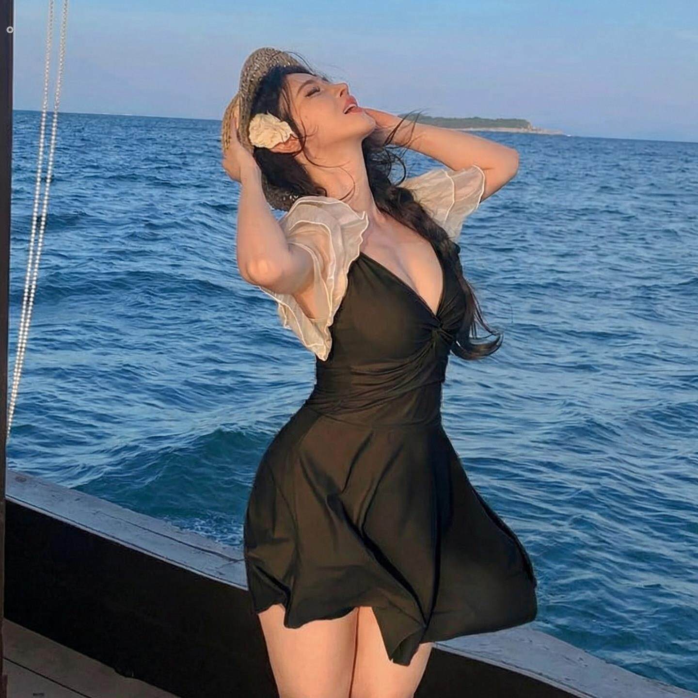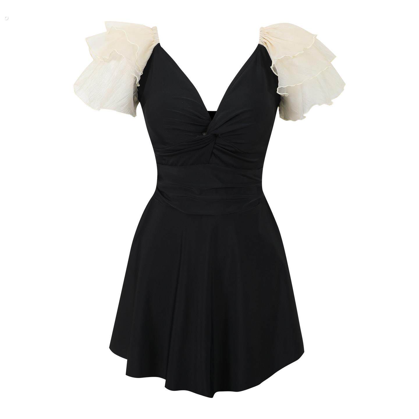 保守学生胖mm200斤温泉泳装 微胖女孩大码 泳衣女遮肉显瘦连体裙式