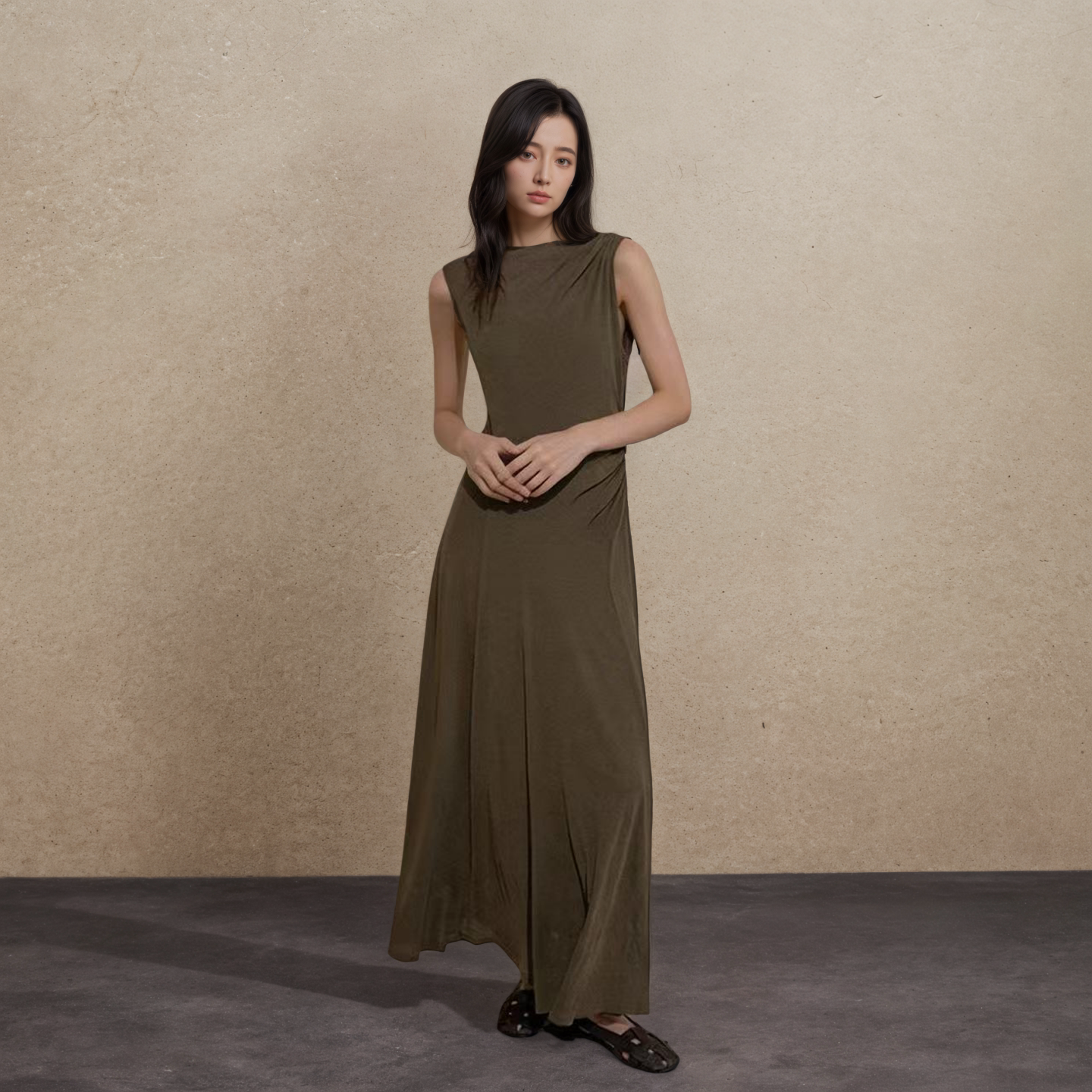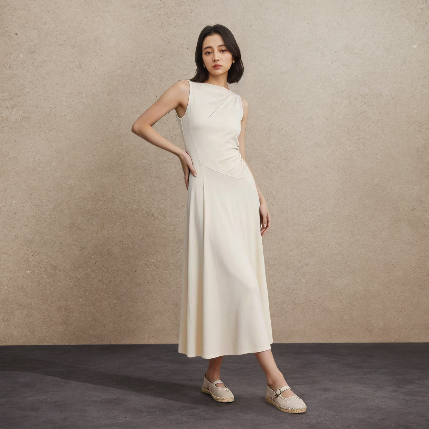 新款 高定剪裁 蛀虫纱捏褶收腰设计感连衣裙女两件套2026夏季