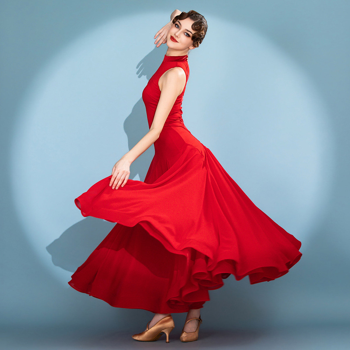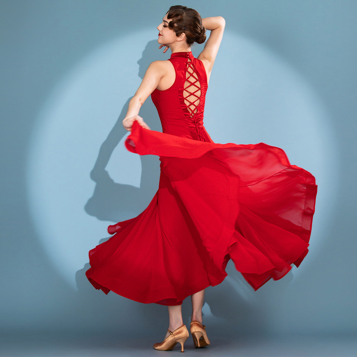 情迷维也纳 拼接攀绳设计 成人摩登舞连衣裙2133水晶棉国标舞服装