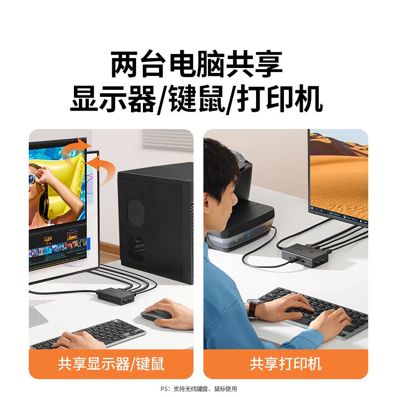 绿联kvm切换器hdmi二进 四进一出一套键盘鼠标控制两台电脑2双主机共用一个显示器带多usb共享同步分配切屏器