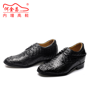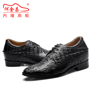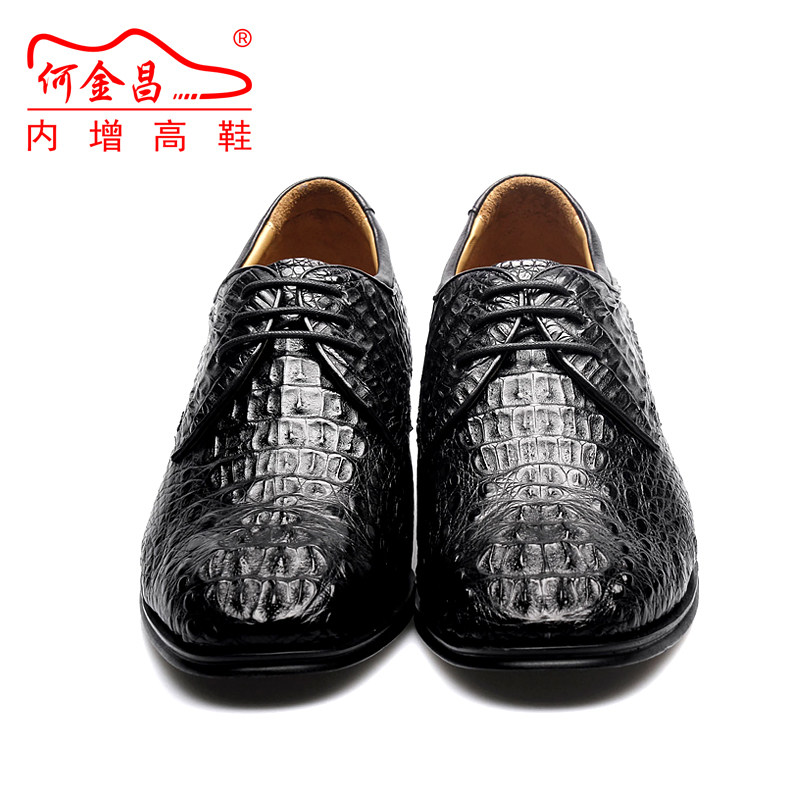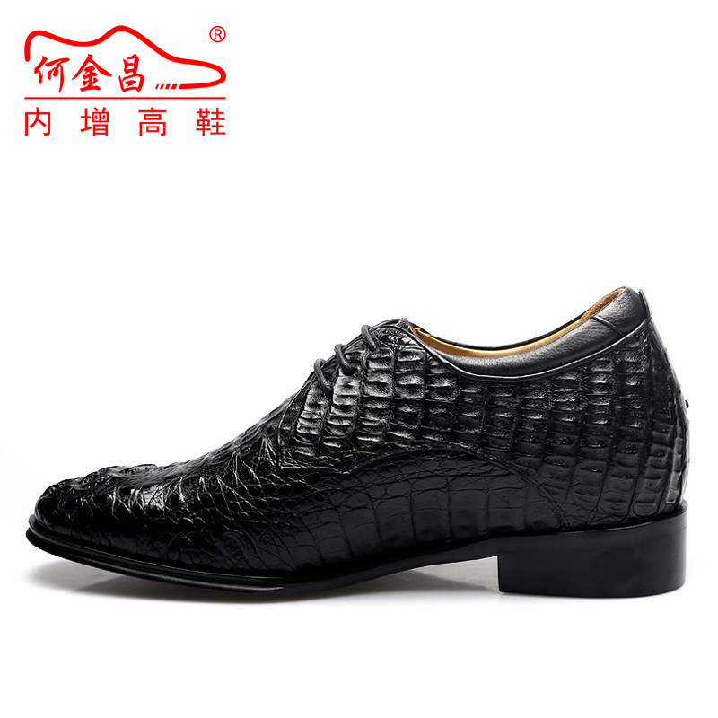 内增高鞋 男式 商务正装 鳄鱼皮皮鞋 7CM 订做款 精品男鞋 何金昌增高鞋