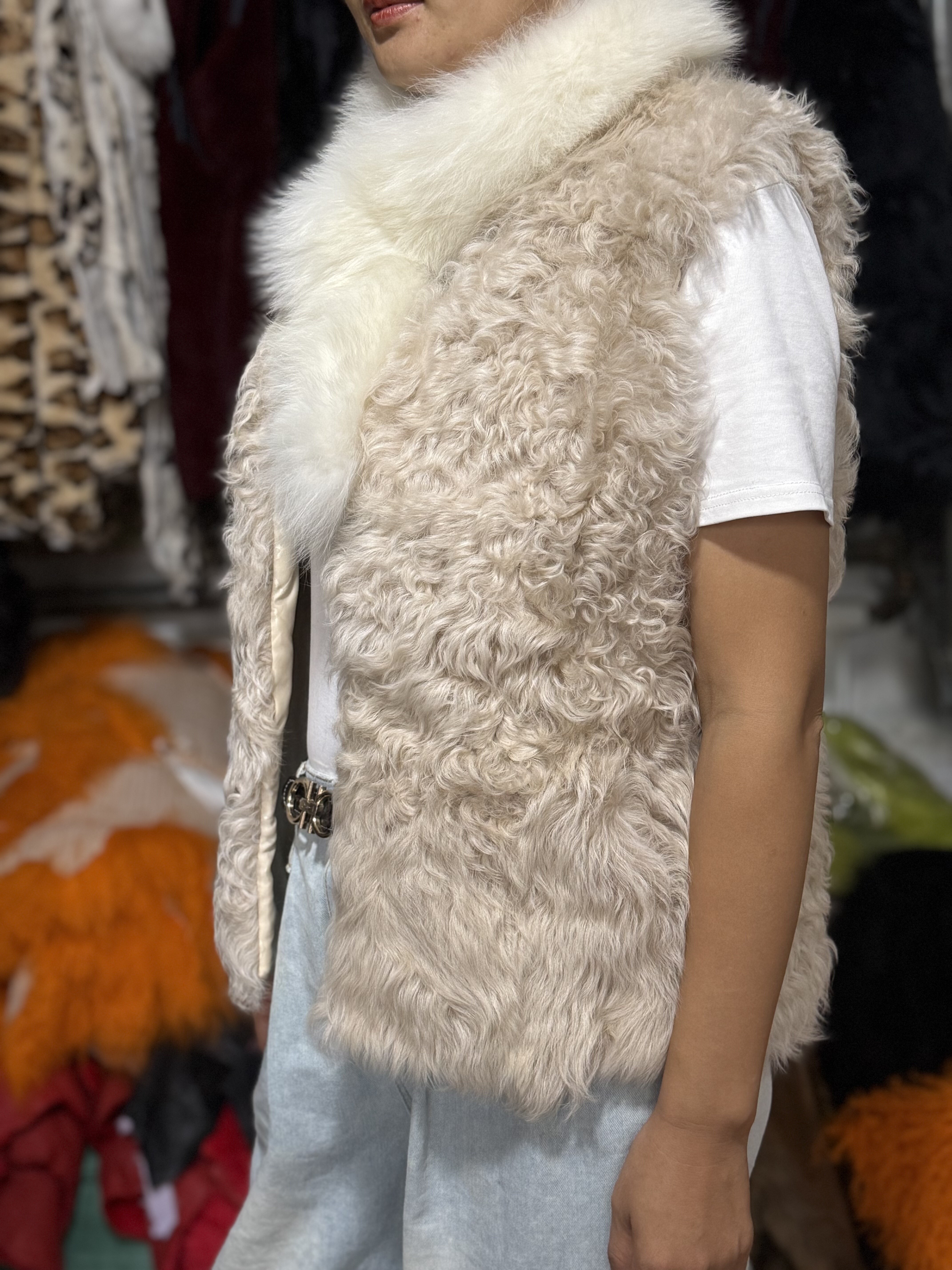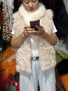 小个子针织袖 年轻环保皮草毛毛外套女短款 马甲可拆卸 新款 2025冬季