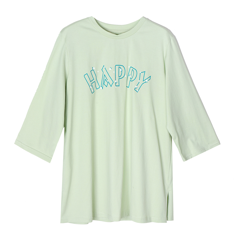 卫衣 孕妇T恤春季 快乐屋孕妇针织印花八分袖 直身型长上衣2025新款