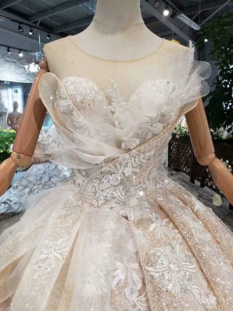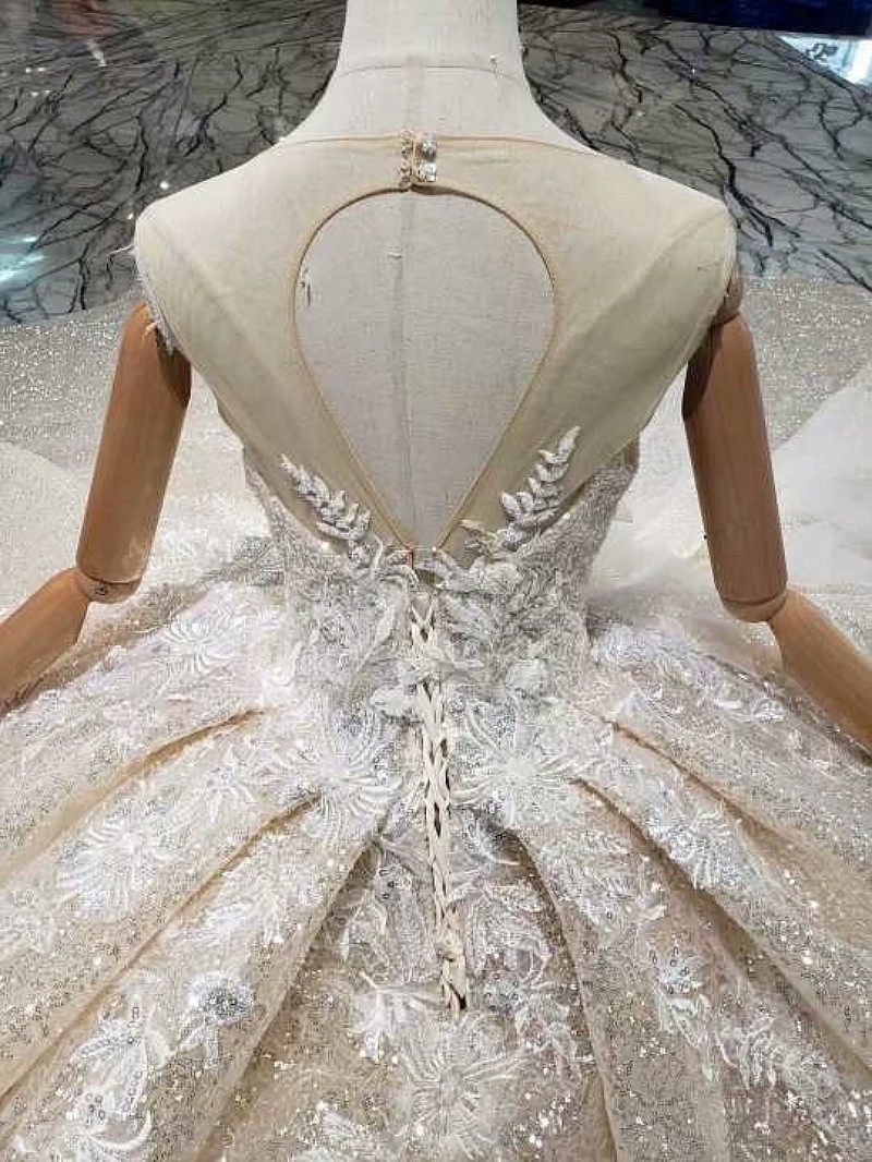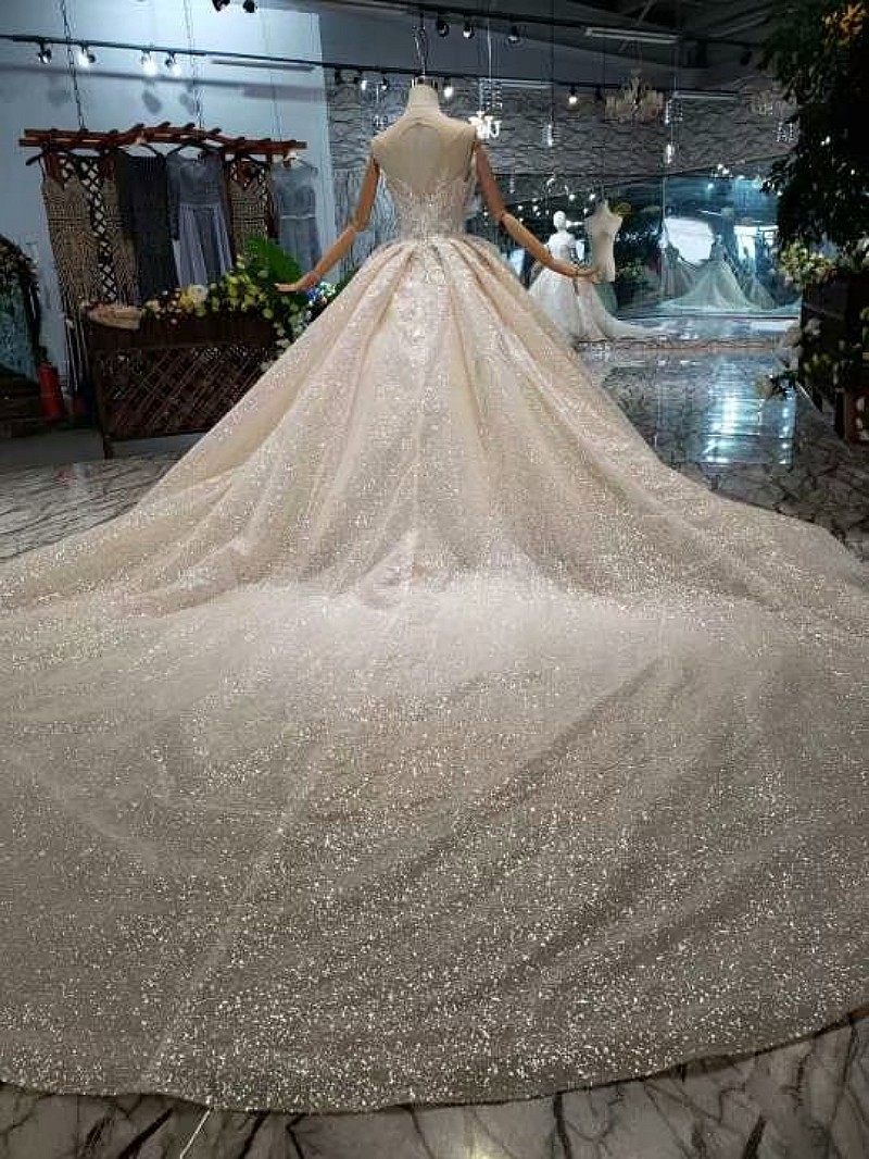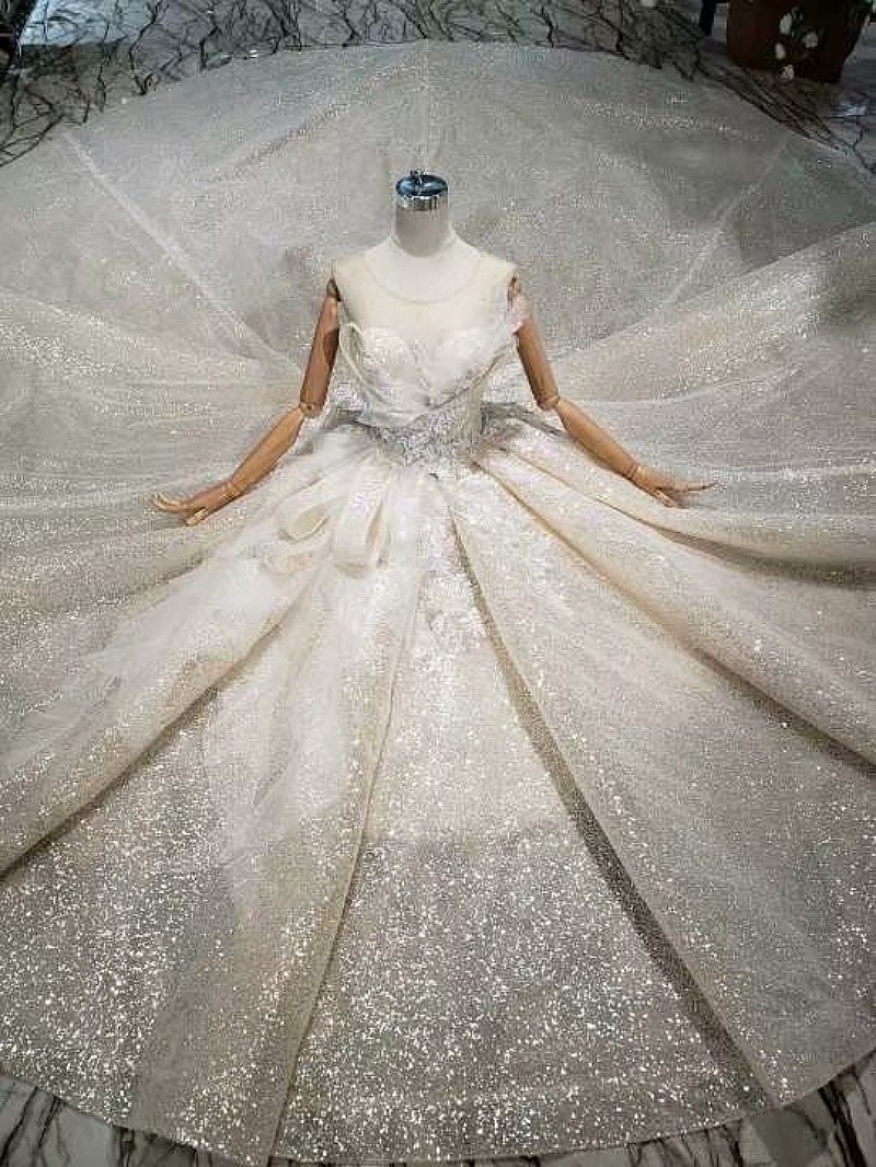 2020新款 大拖尾公主奢华新娘婚纱礼服11889 宫廷抖音网红包肩长袖